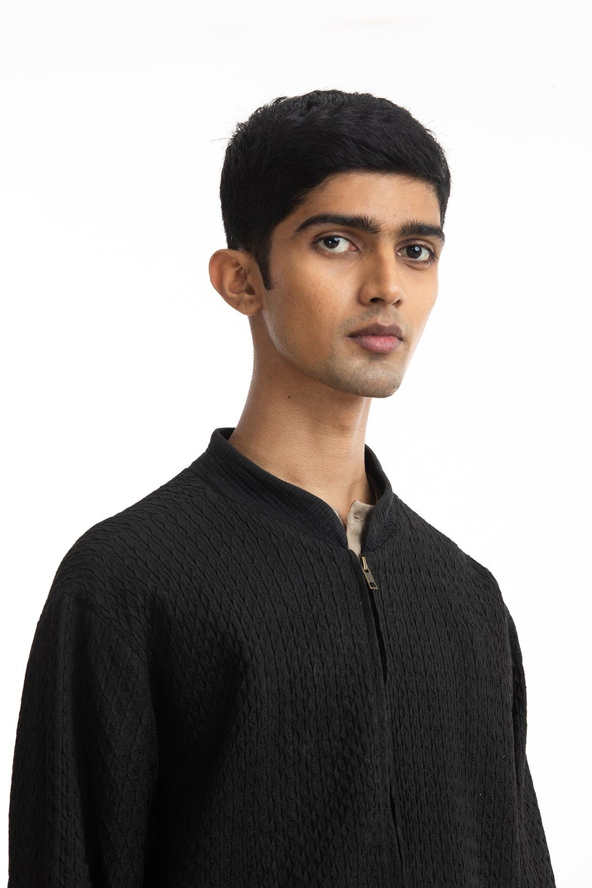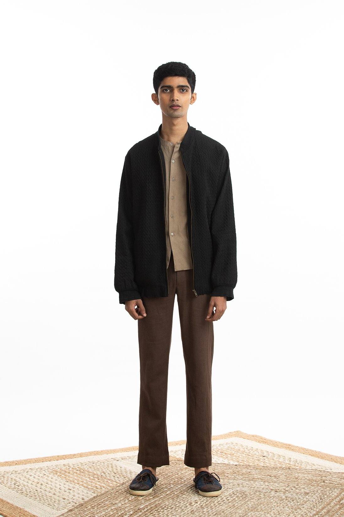 Handwoven Pintuck Black Bomber Jacket Men Akaaro Men