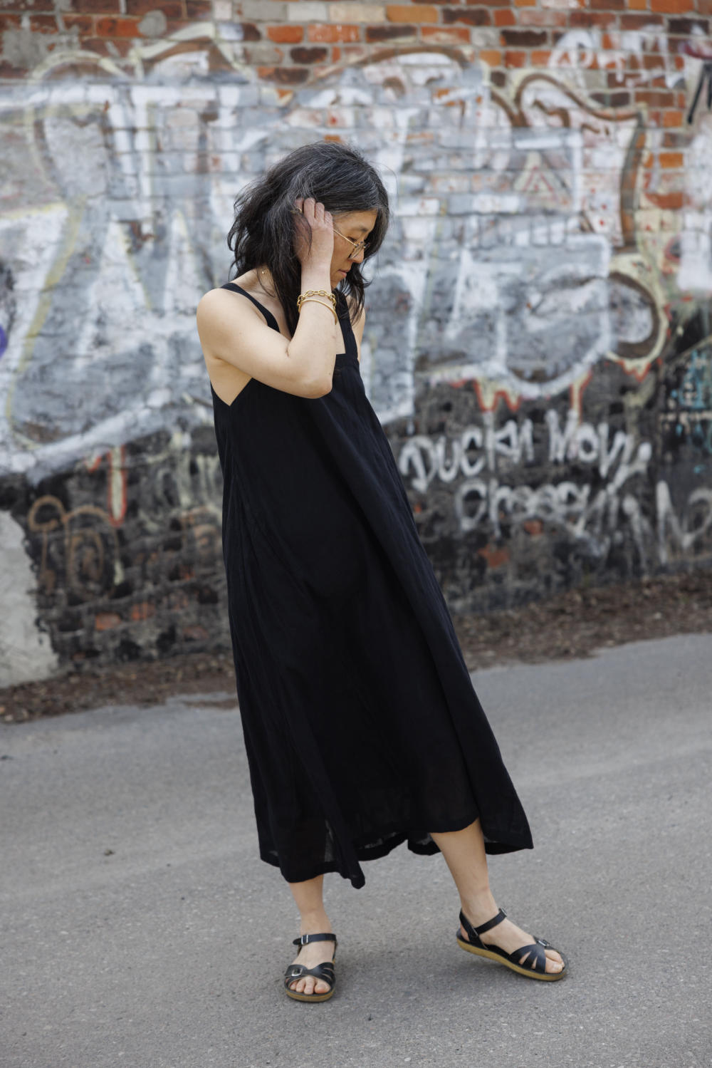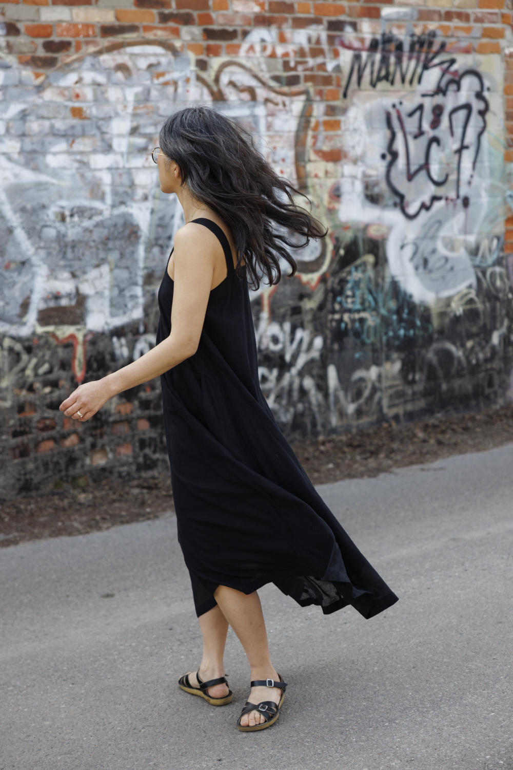 Their silhouettes—relaxed, modern, quietly poetic—carry a language of ease and intention. Natural dyes, azo-free pigments, and slow-woven textiles result in garments that feel honest: soft on the skin, kind to the earth, and deeply respectful of the communities who create them. Each piece is cut and stitched only when ordered, honouring the principle that beauty need not come at the cost of excess.