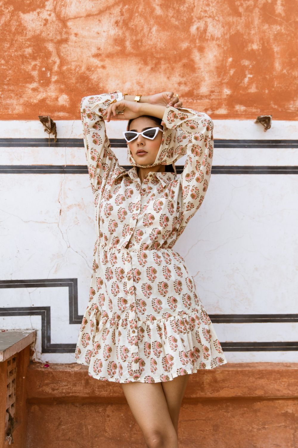"Ilahi - Jaipur inspired patterns in the softest cottons and breeziest silhouettes help set your heart free. Feel the wanderlust within you as you embrace our looks for the perfect summer. Short, sleek and pleated to perfection, we love the whimsy of our printed shirt dress.