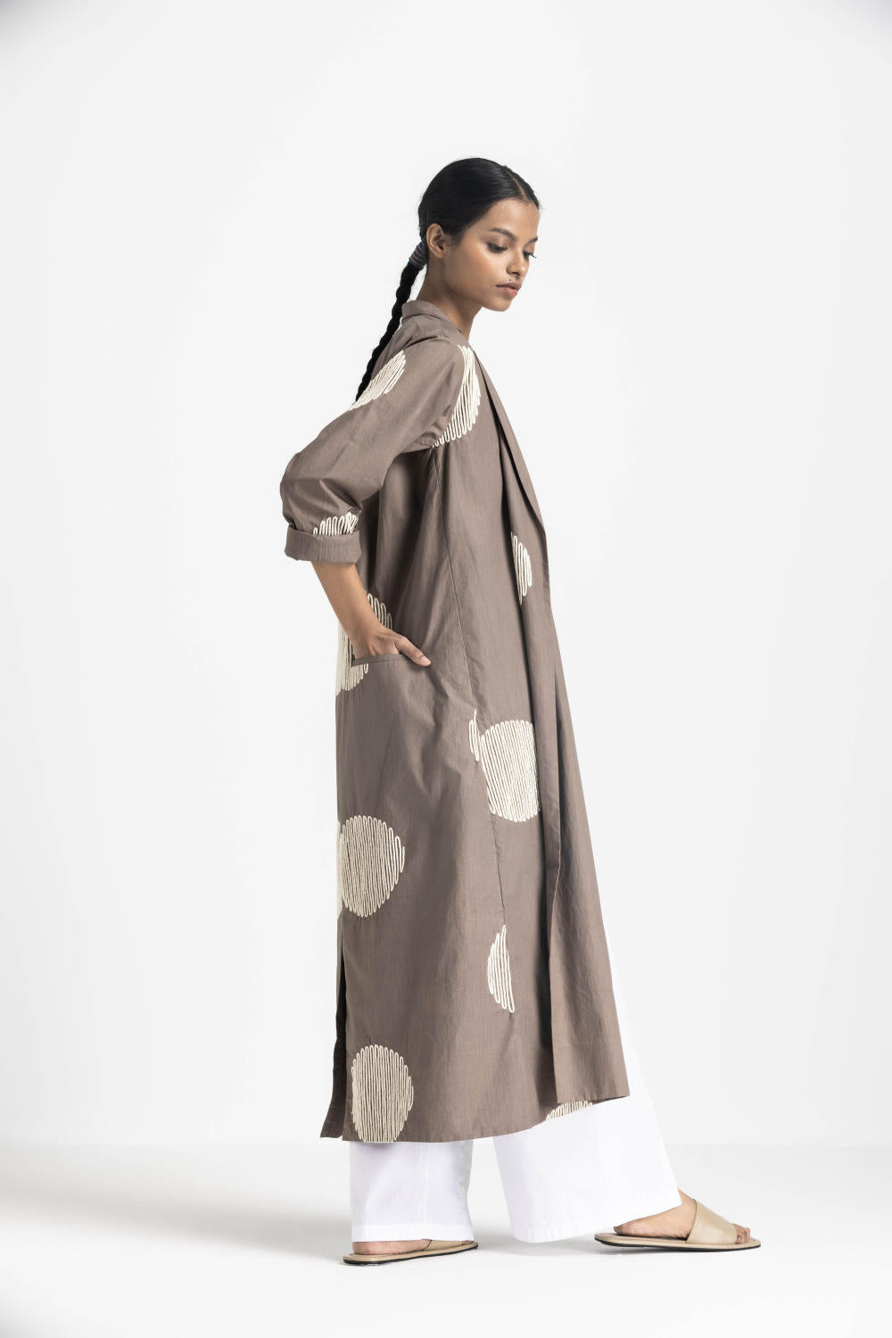 Clever cuts, asymmetric patterns, a neutral palette and simplicity of geometric details form the core aesthetic of the brand. Their love for asymmetry and imperfection clearly reflects in their silhouettes and hemlines. The label is a modern mix of conceptual and wearable clothing which defies age bar as the ensembles exude comfort, more so with their signature anti-fit coords.