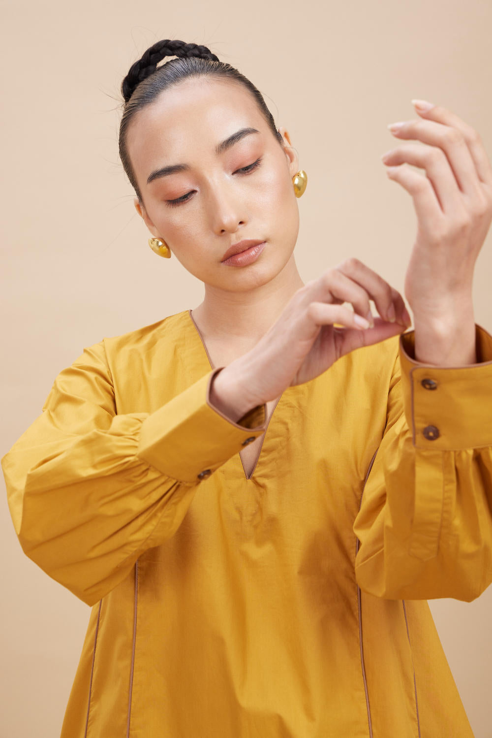 Aavidi’s language is one of soft architecture: silhouettes that breathe, fabrics that hold memory, and surface techniques — from clamp dyeing to block printing — that carry the imprint of time. Here, simplicity isn’t minimalism; it’s clarity. A grounding. A return.