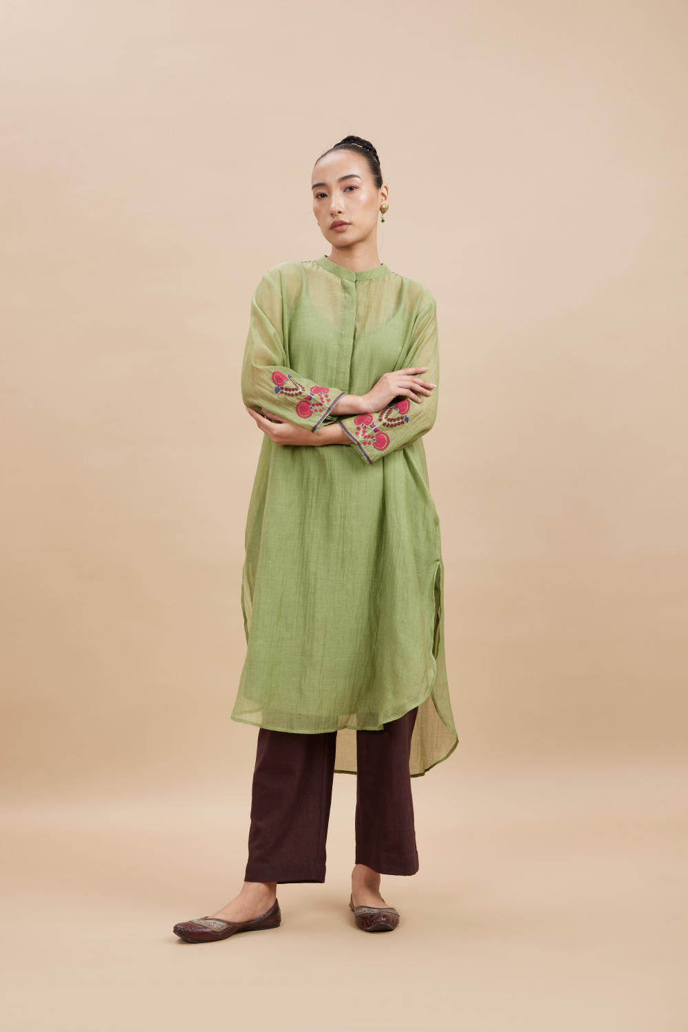 Colour: Pista green & Brown Pants