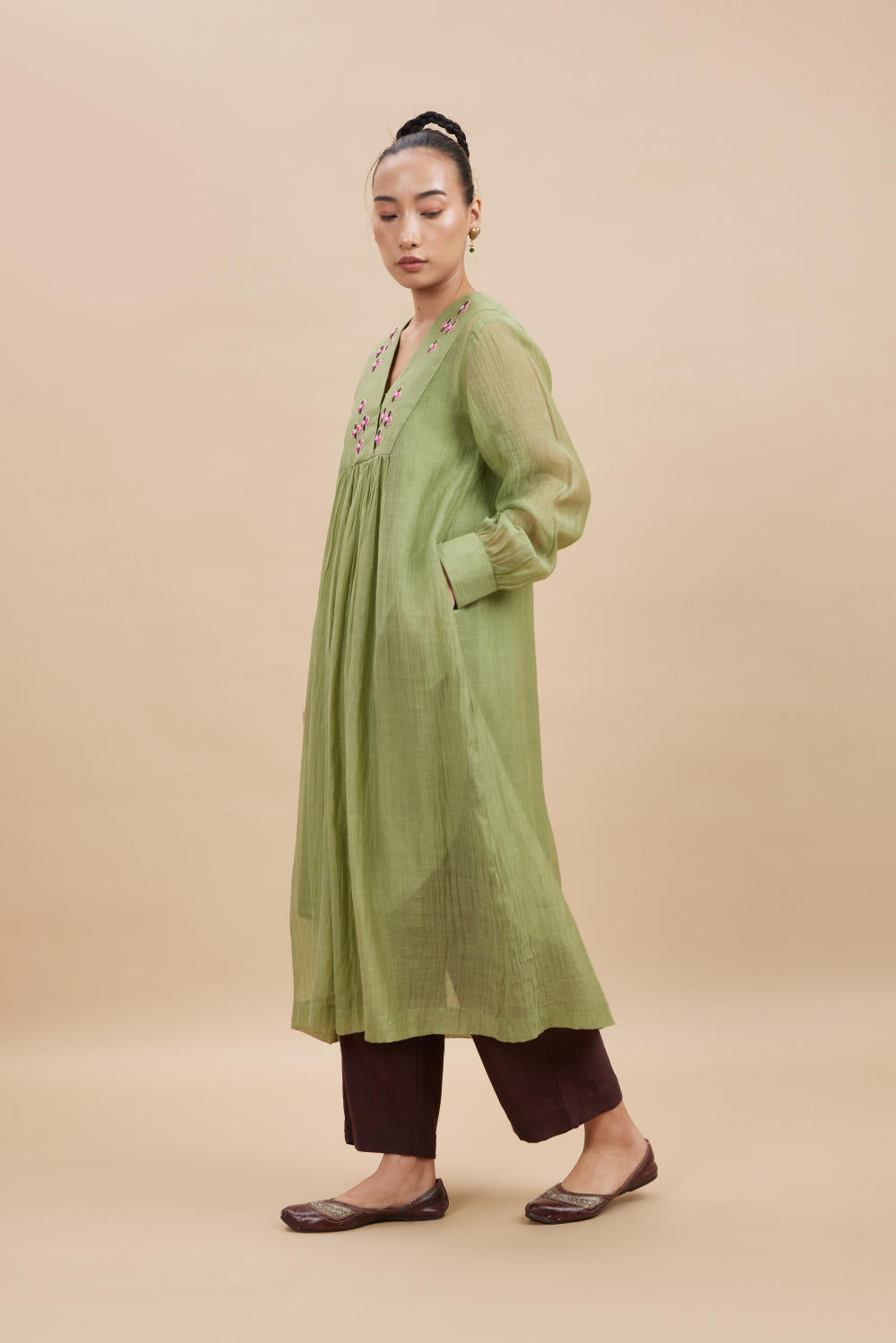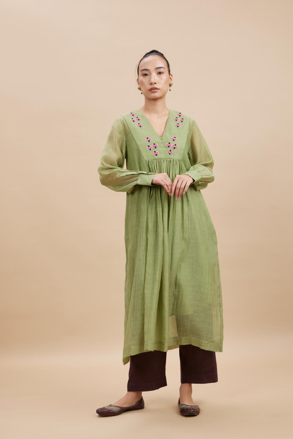 Colour: Pista green & Brown Pants