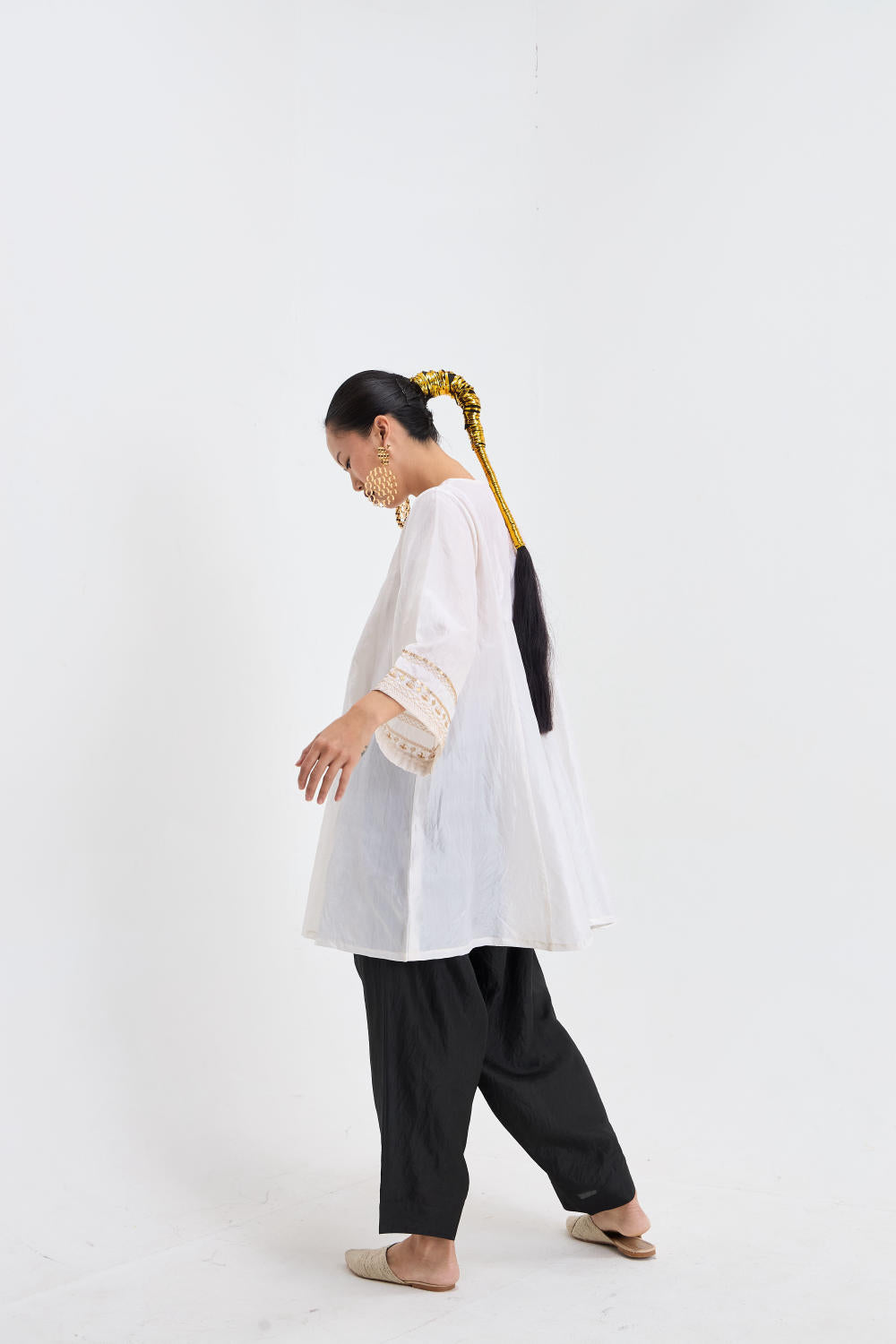 At Canvas & Weaves, we see Aavidi as part of a larger conversation about what it means to dress with intention. These are pieces for women who desire ease without erasing elegance — garments that serve, move, and accompany rather than dictate. Aavidi’s kalidaar kurtas, finished with delicate sacha gota work, exemplify this balance. Classic lines meet modern restraint, pairing effortlessly with salwars adorned in thoughtful gota motifs.