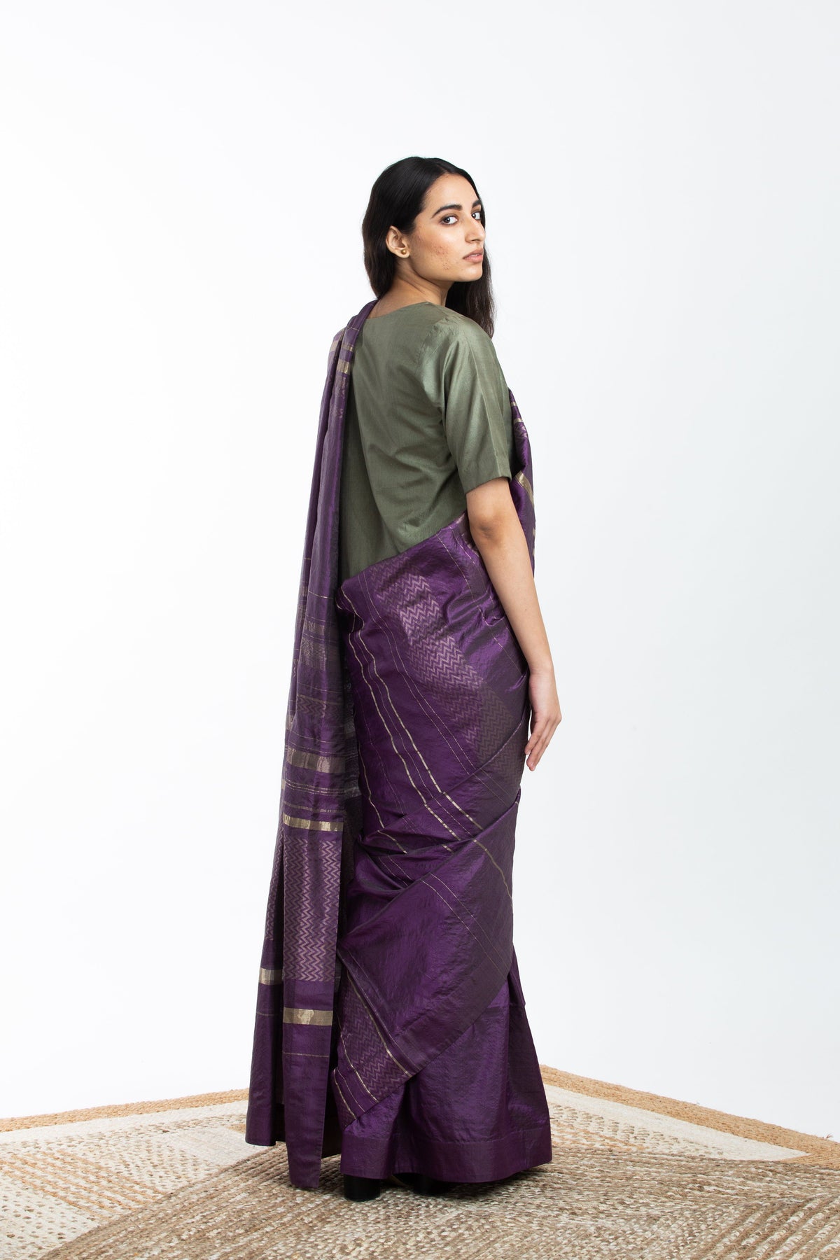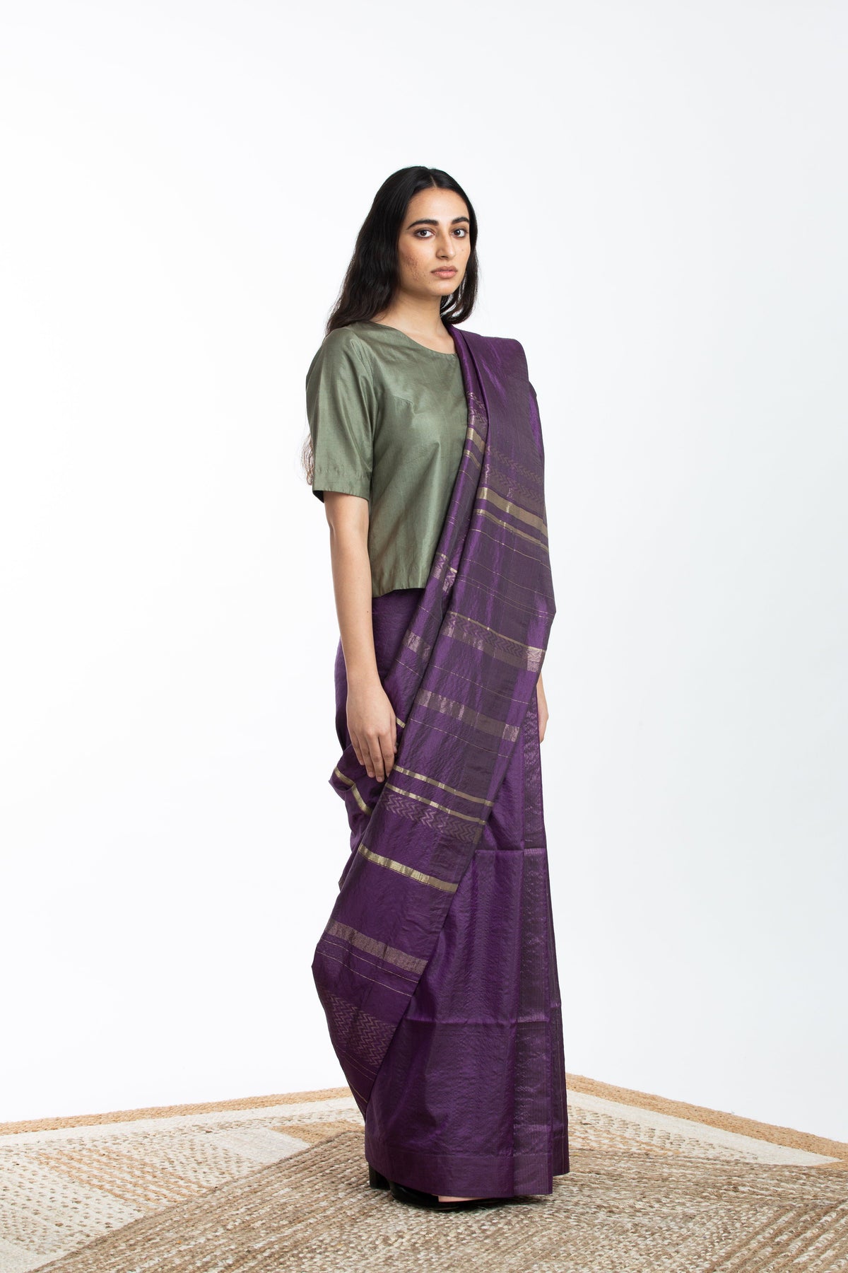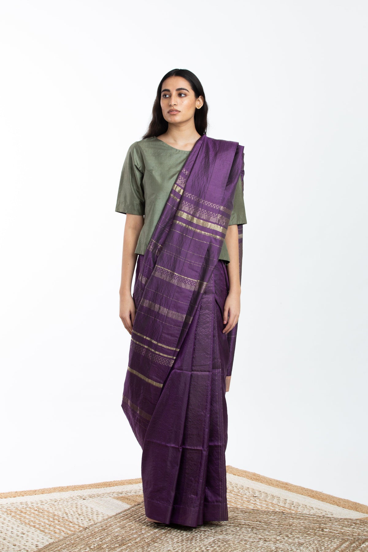 Handwoven Purple Engineered Silk Saree Fashion Akaaro