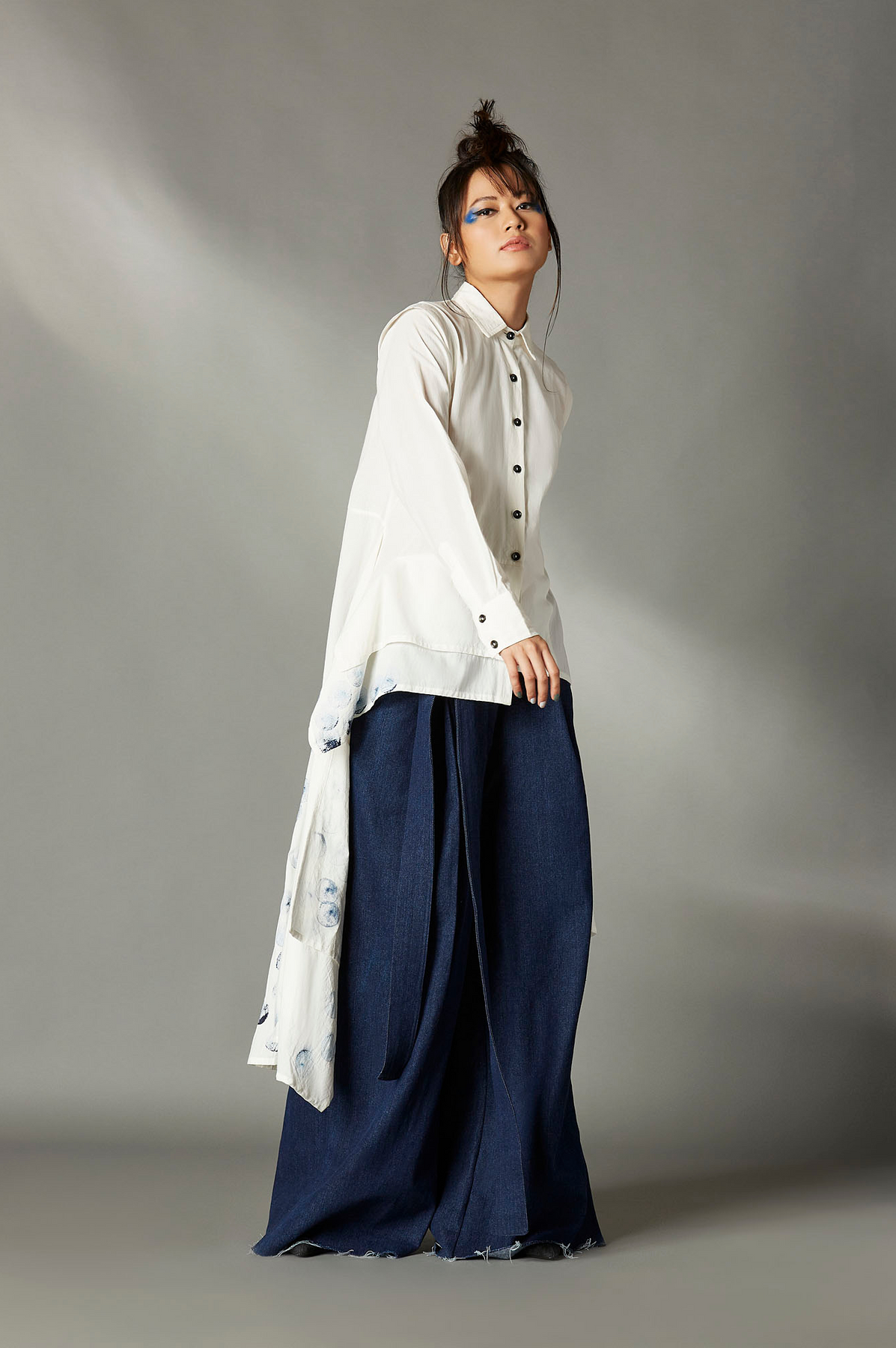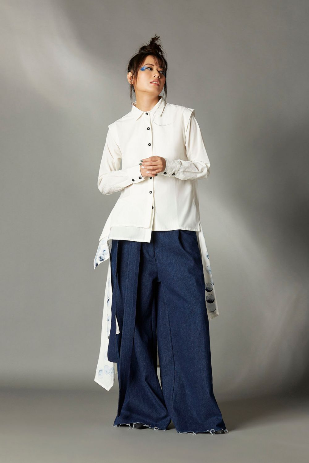 Chola’s universe begins with thoughtful materials. Recycled cottons, post-consumer fabrics, and free-cutting techniques come together in a kind of mindful choreography—one that honours form without creating waste, and prioritises movement over rigidity. This is clothing that feels lived-in yet architectural; pared-back yet quietly avant-garde.