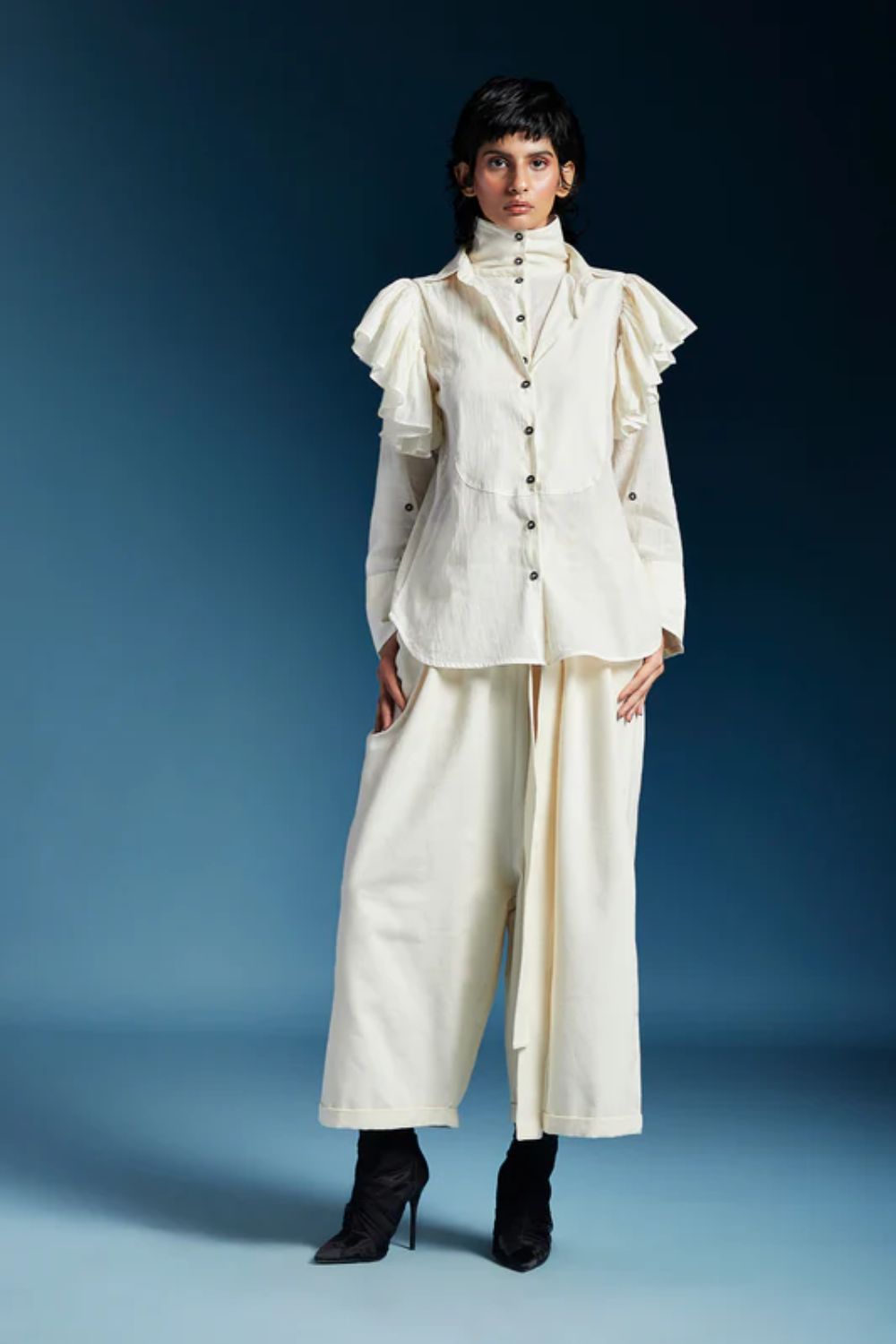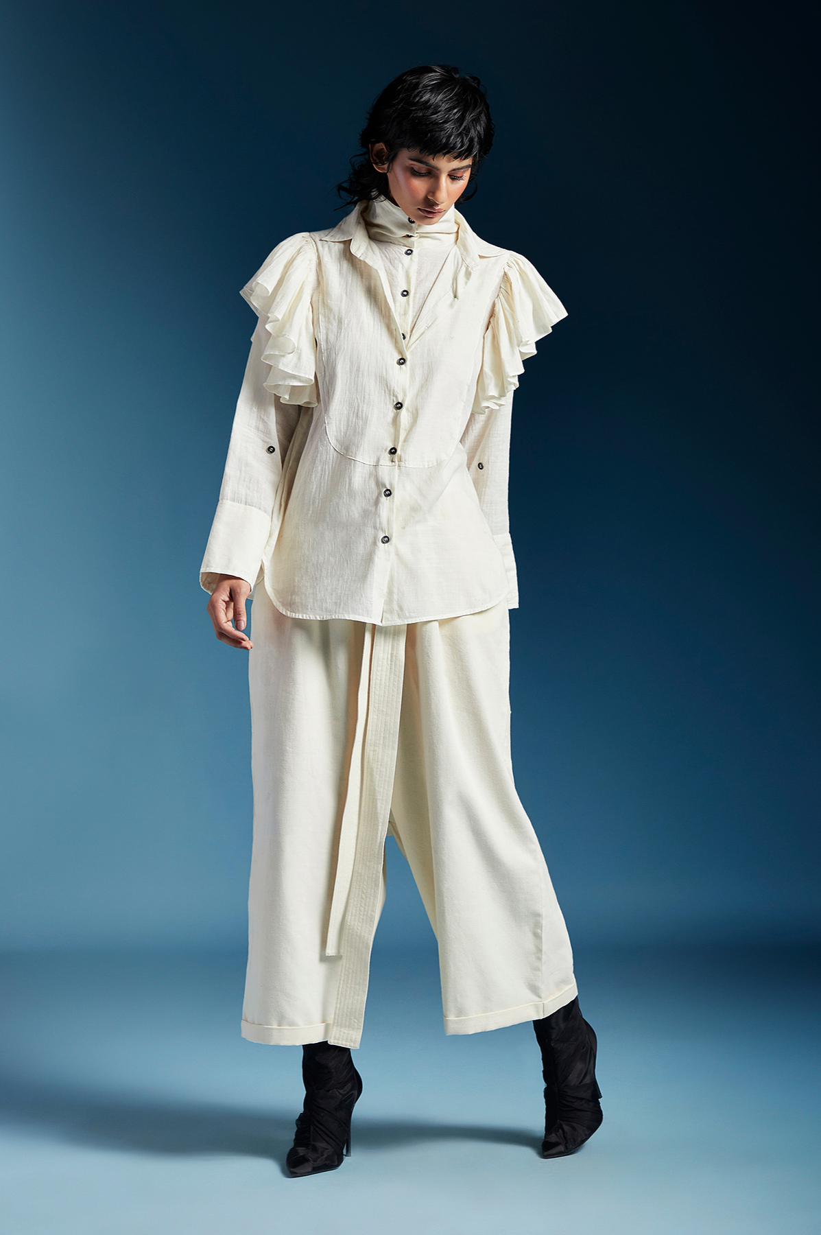 SHIRT WITH LONG CURVED DOUBLE YOKE, FRILLS, STRAIGHT SLEEVES & BACK BUTTONS