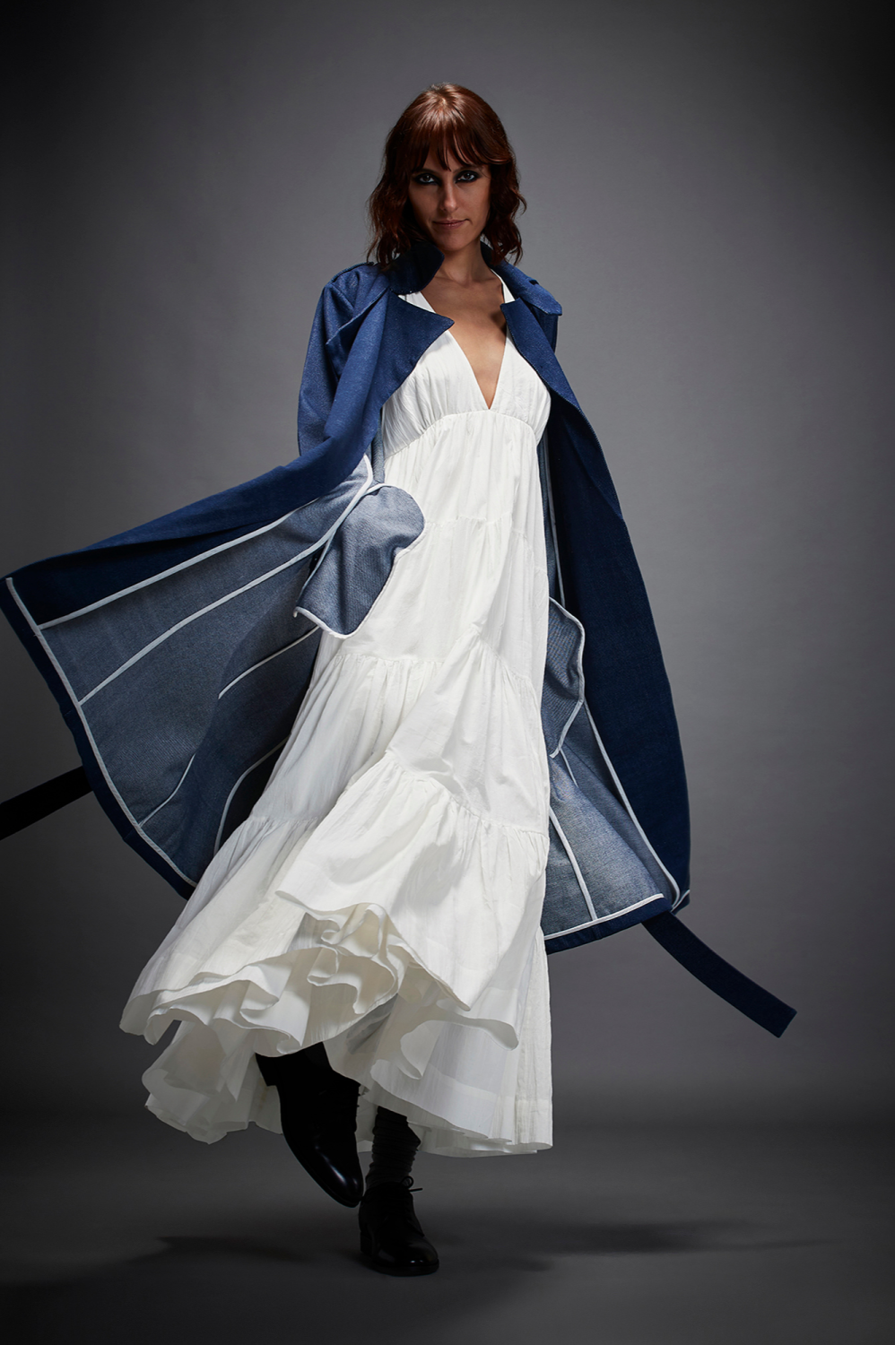 Chola’s universe begins with thoughtful materials. Recycled cottons, post-consumer fabrics, and free-cutting techniques come together in a kind of mindful choreography—one that honours form without creating waste, and prioritises movement over rigidity. This is clothing that feels lived-in yet architectural; pared-back yet quietly avant-garde.