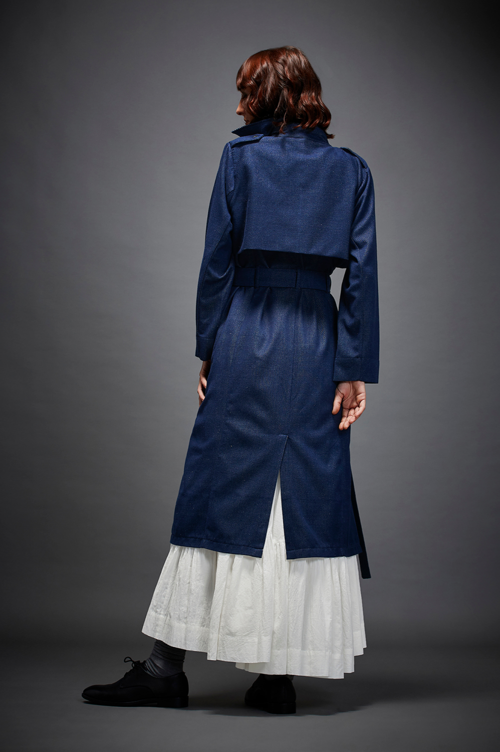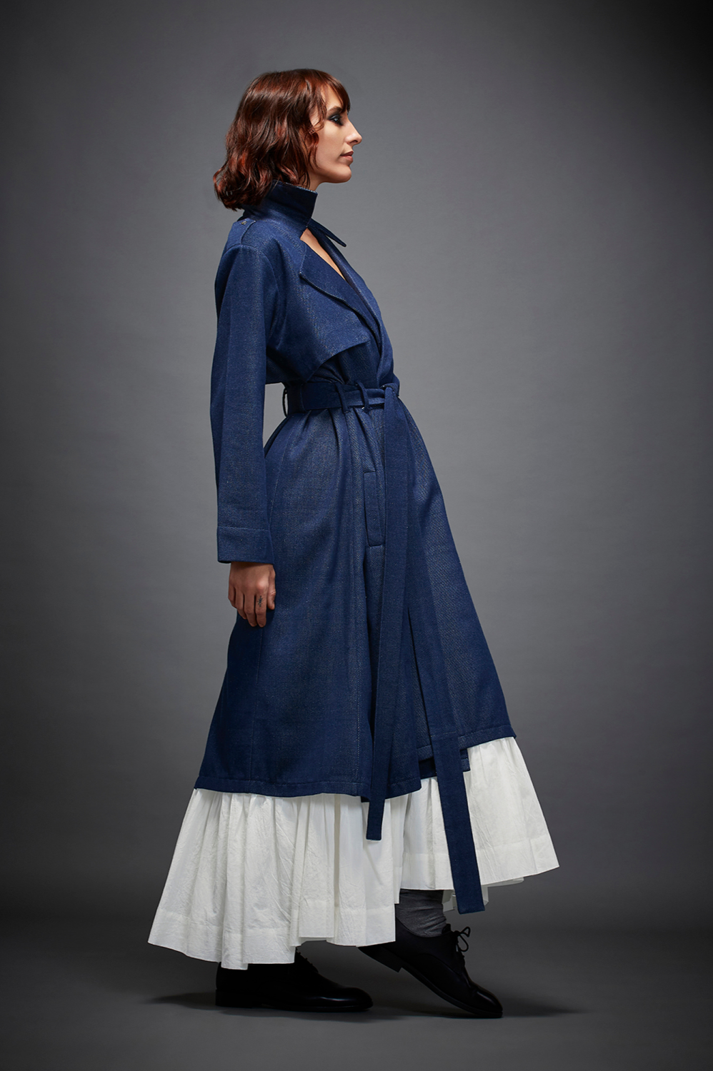 TRENCH JACKET WITH WIDE LAPELS, FULL SLEEVES, BACK SLIT AND A TIE UP BELT