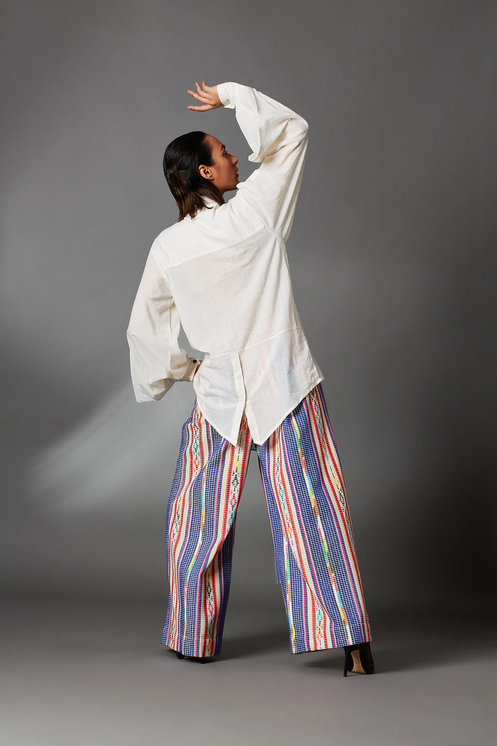 Chola’s universe begins with thoughtful materials. Recycled cottons, post-consumer fabrics, and free-cutting techniques come together in a kind of mindful choreography—one that honours form without creating waste, and prioritises movement over rigidity. This is clothing that feels lived-in yet architectural; pared-back yet quietly avant-garde.