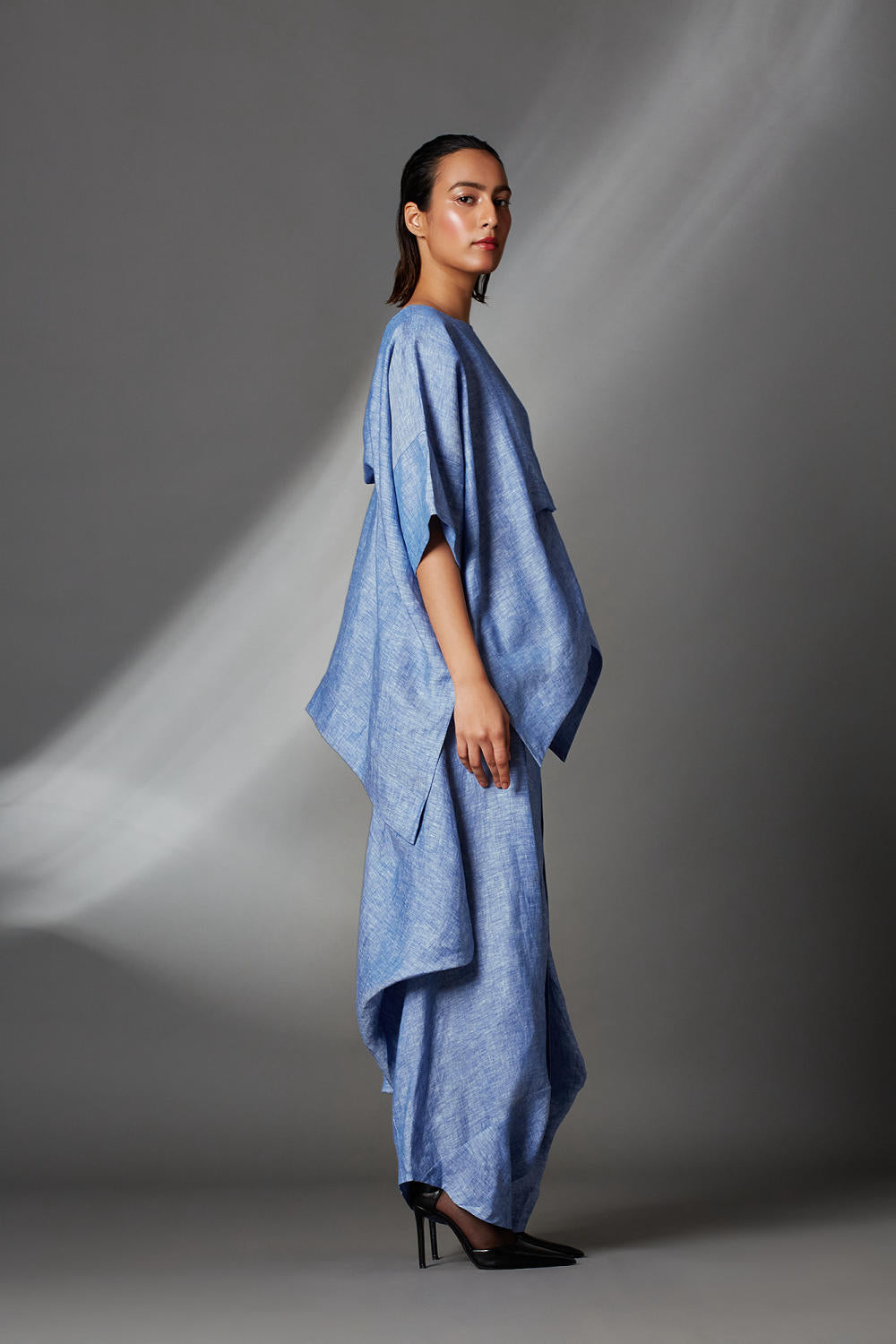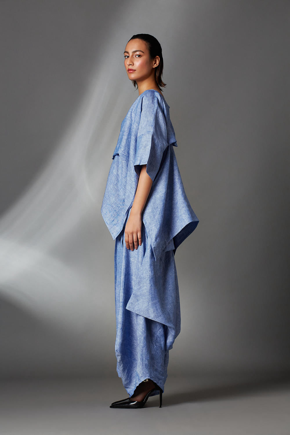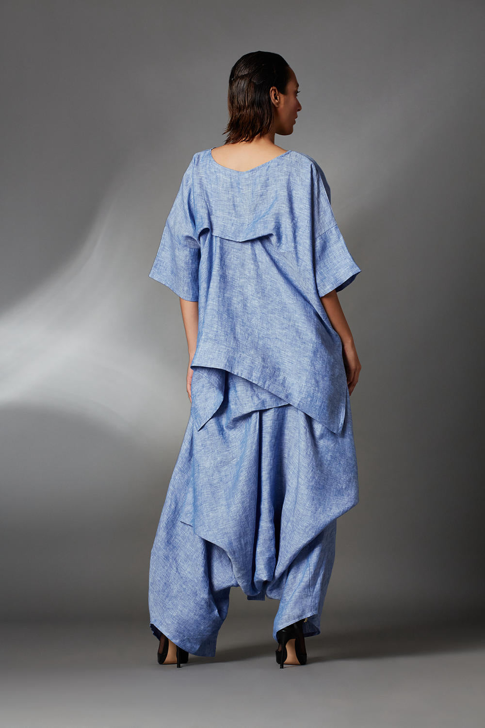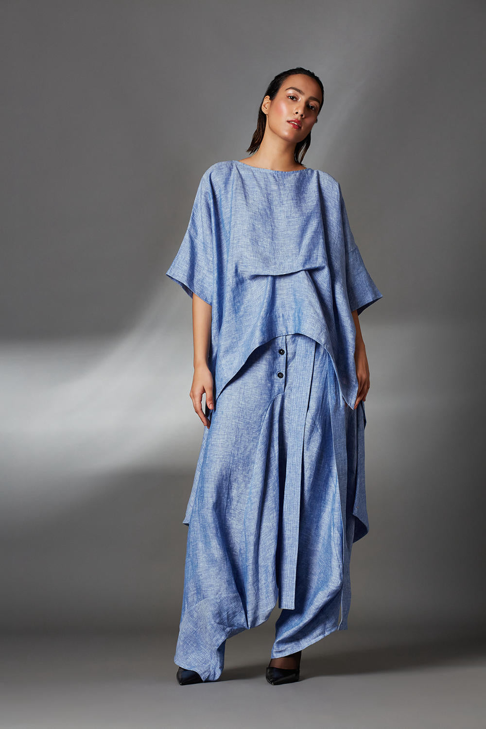 DROP SHOULDER TOP WITH INWARD CURVED HEM, BOX SLEEVES AND HALF UNEVEN FOLDS