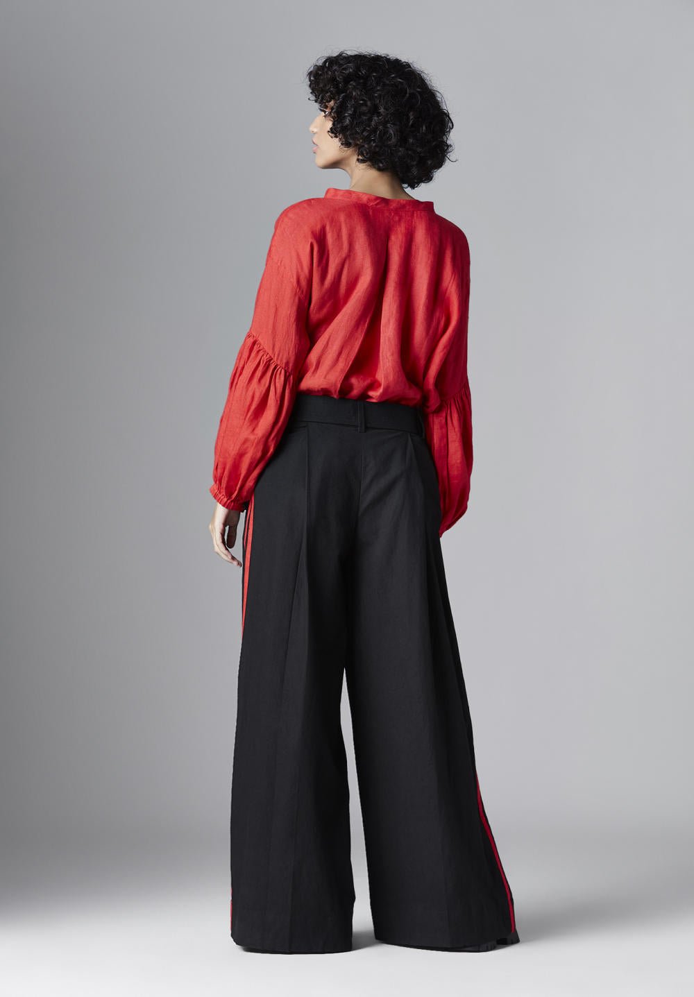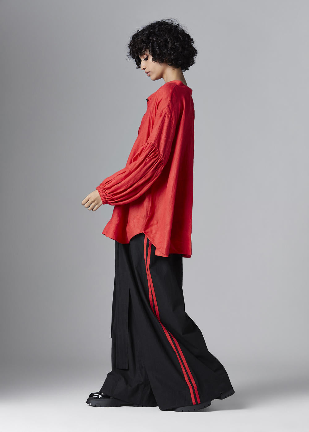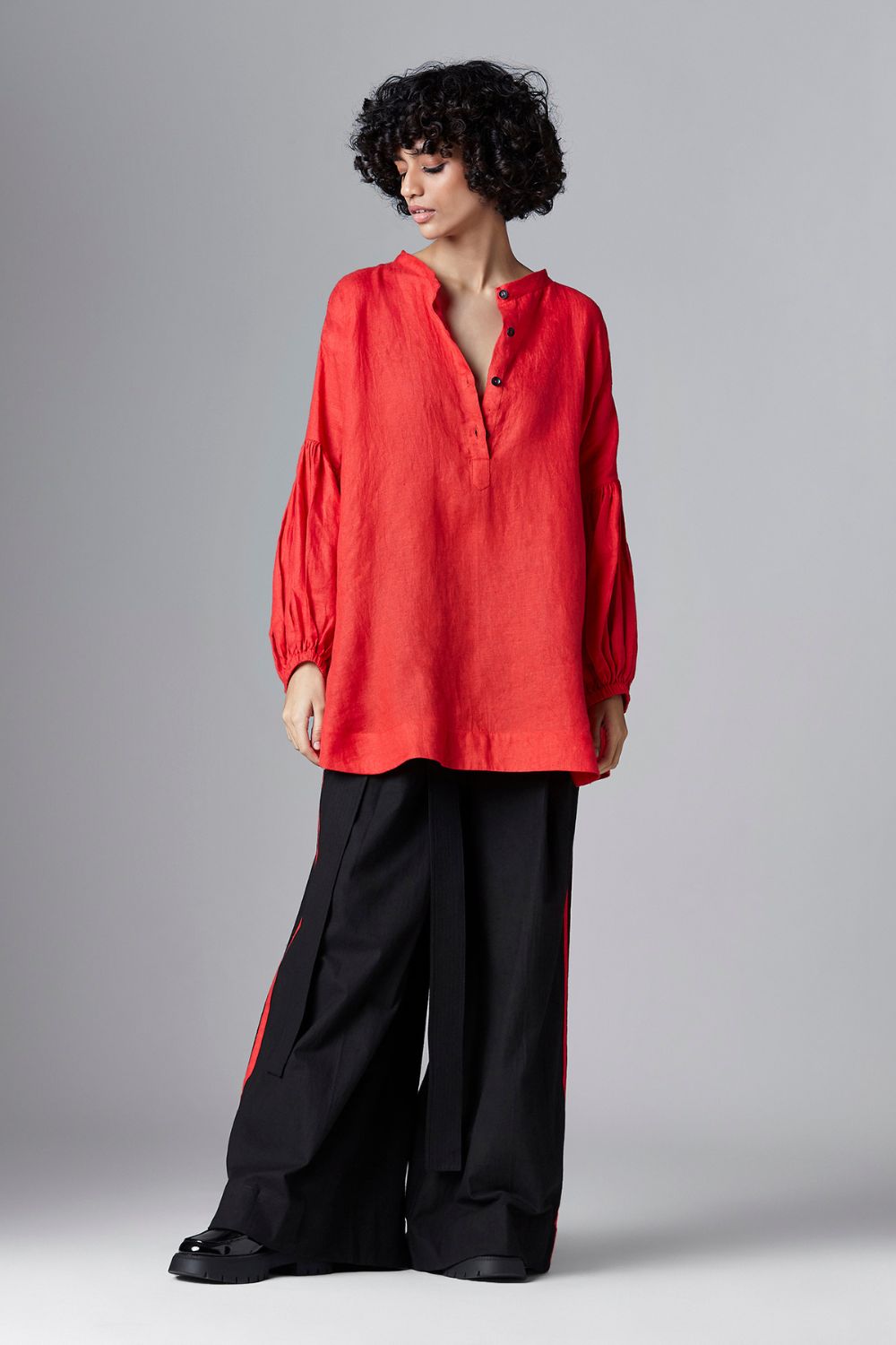 U SHAPE SHIRT WITH BISHOP SLEEVES AND HALF FRONT BUTTON PLACKET
