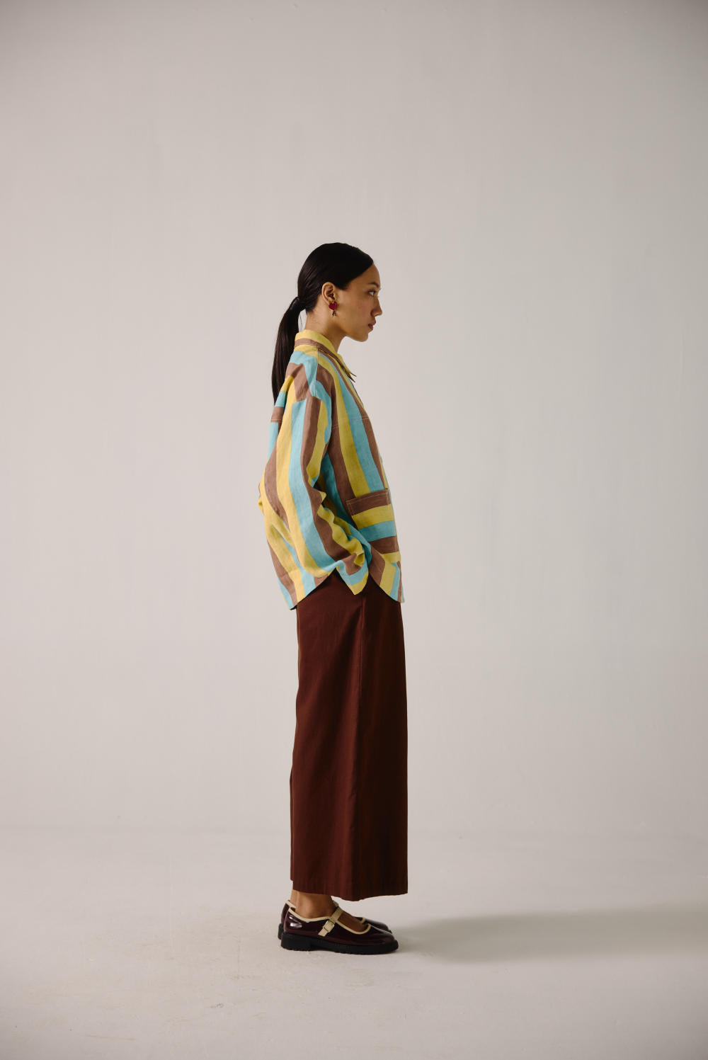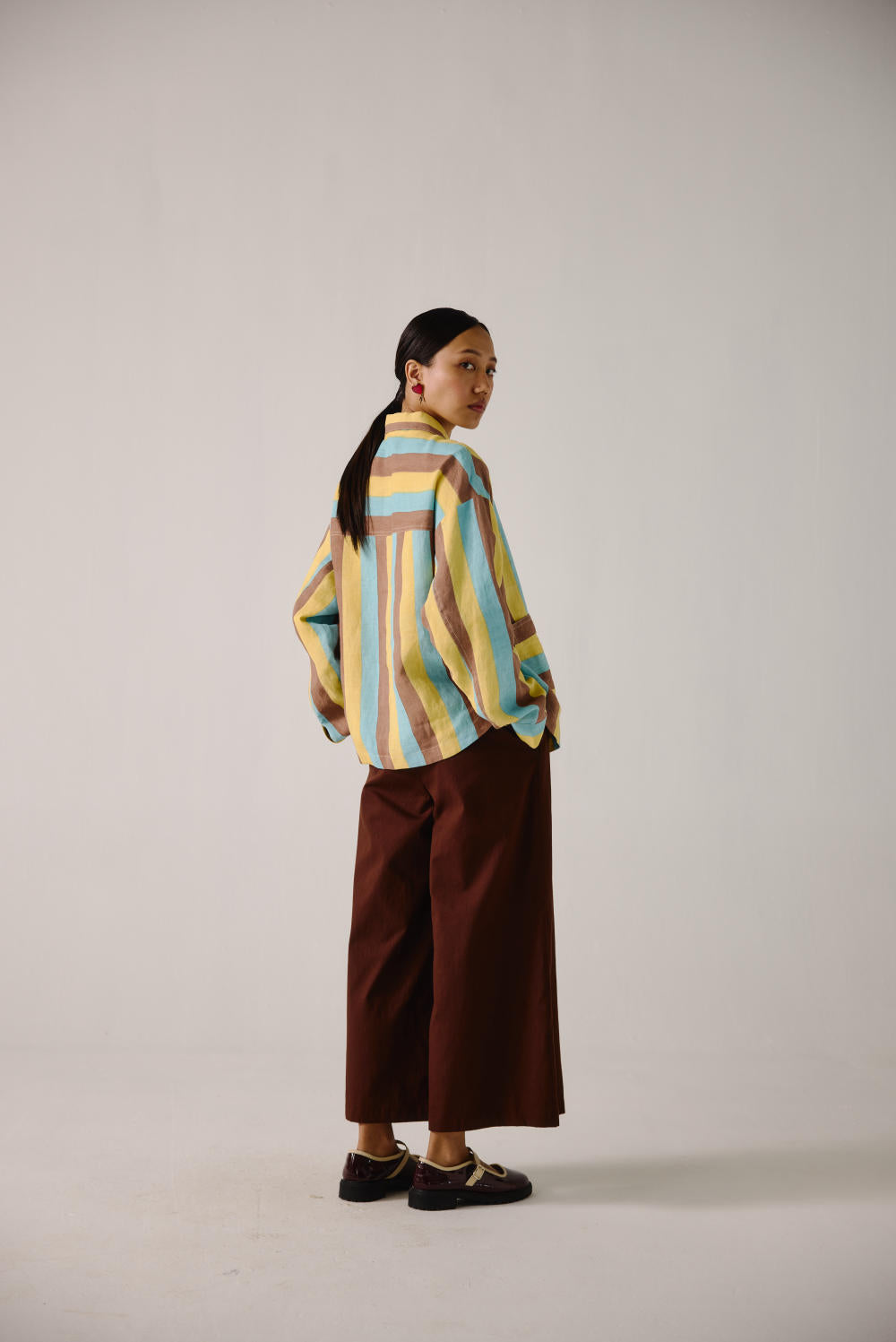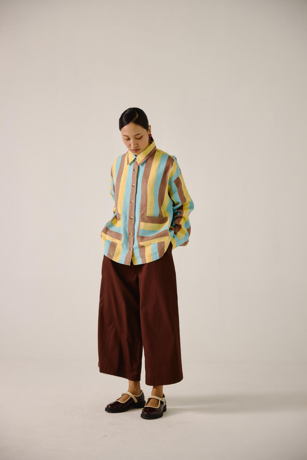 The Ava Jacket, crafted from breathable linen, is a versatile layering piece with a straight fit and a bold, vibrant Striper print. Designed for both style and functionality, it features full sleeves, practical pockets, and a curved hem for a refined finish. Effortlessly chic and easy to style, this jacket adds a striking touch to any outfit.