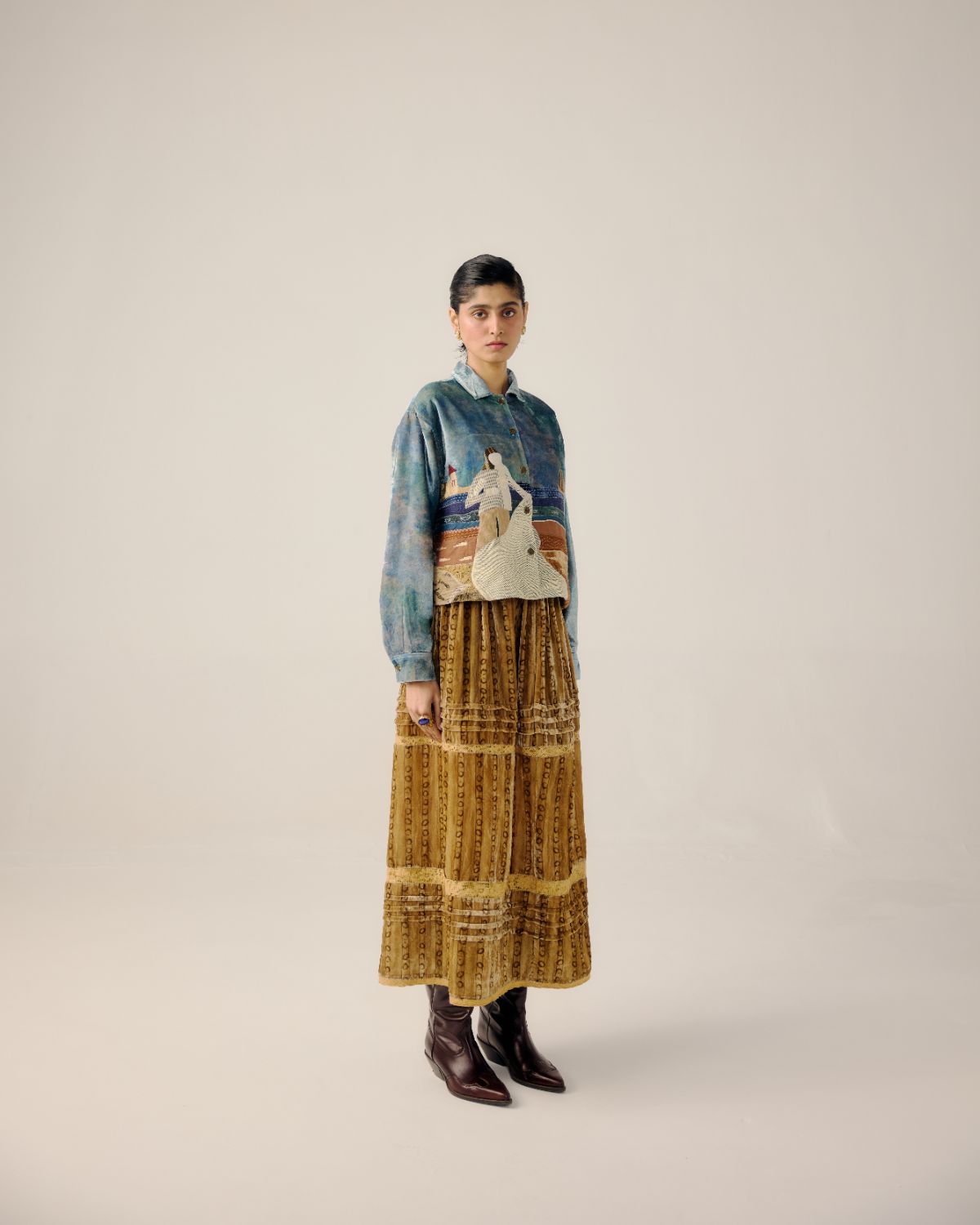 CORD blurs the line between art and attire in a way few labels dare to. Here, fabrics become canvases; illustrations—drawn by hand, steeped in imagination—flow across silhouettes that feel sculptural yet deeply wearable. Each piece has a texture of memory to it, as if it carries echoes of a past life, now reframed for a contemporary world.