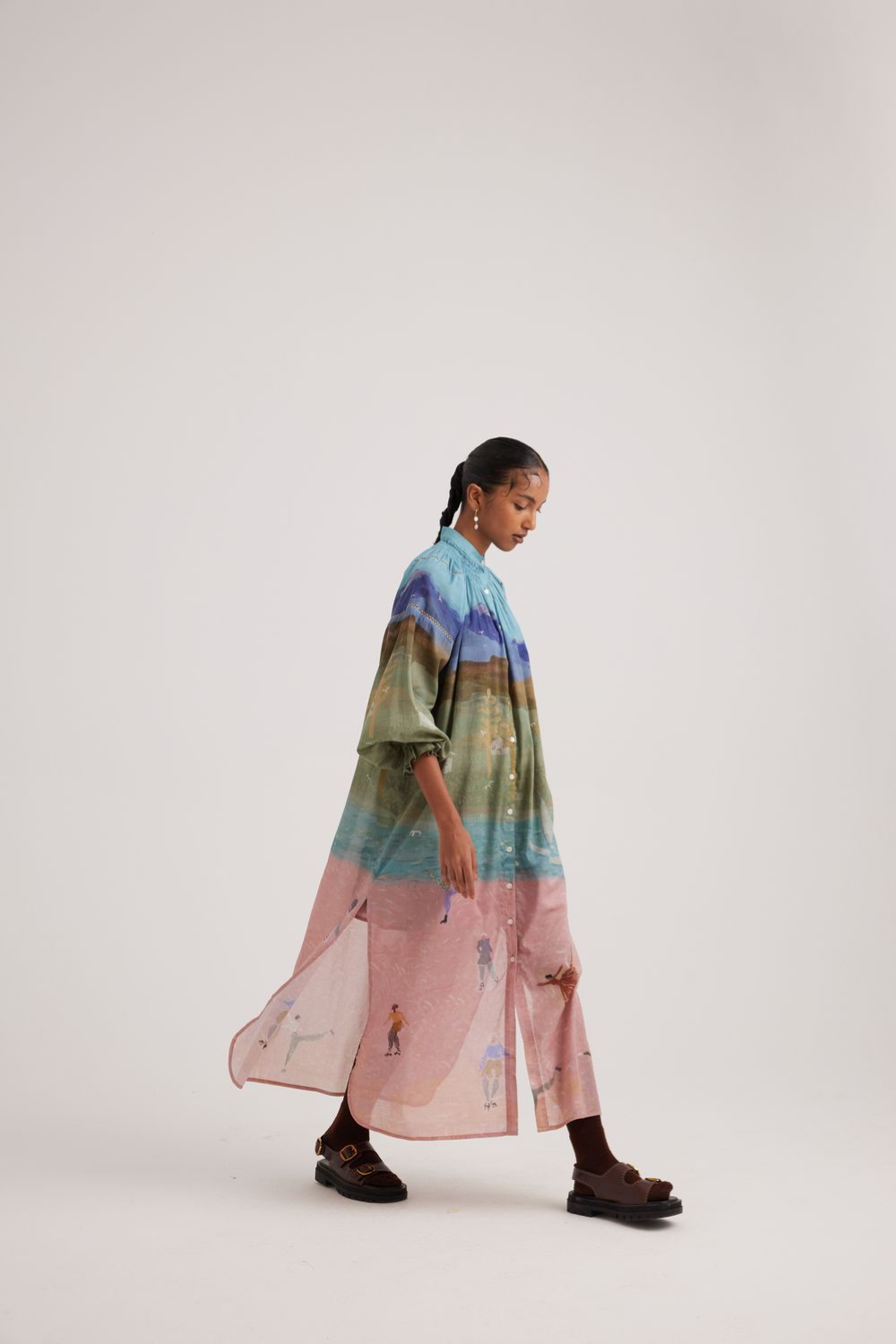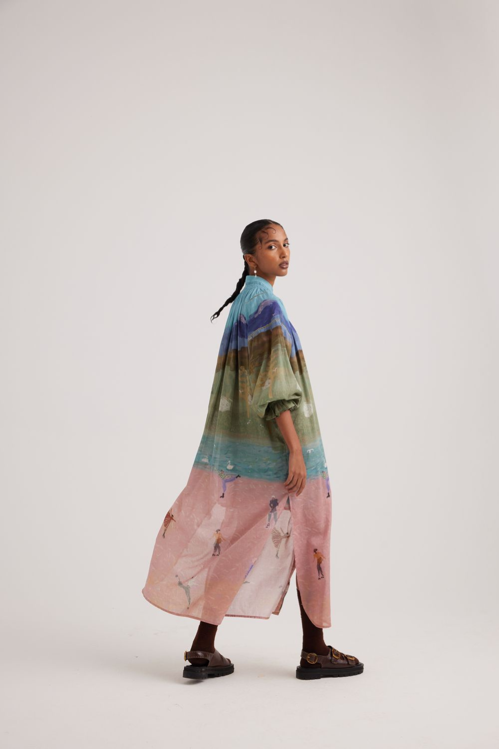 CORD blurs the line between art and attire in a way few labels dare to. Here, fabrics become canvases; illustrations—drawn by hand, steeped in imagination—flow across silhouettes that feel sculptural yet deeply wearable. Each piece has a texture of memory to it, as if it carries echoes of a past life, now reframed for a contemporary world.
