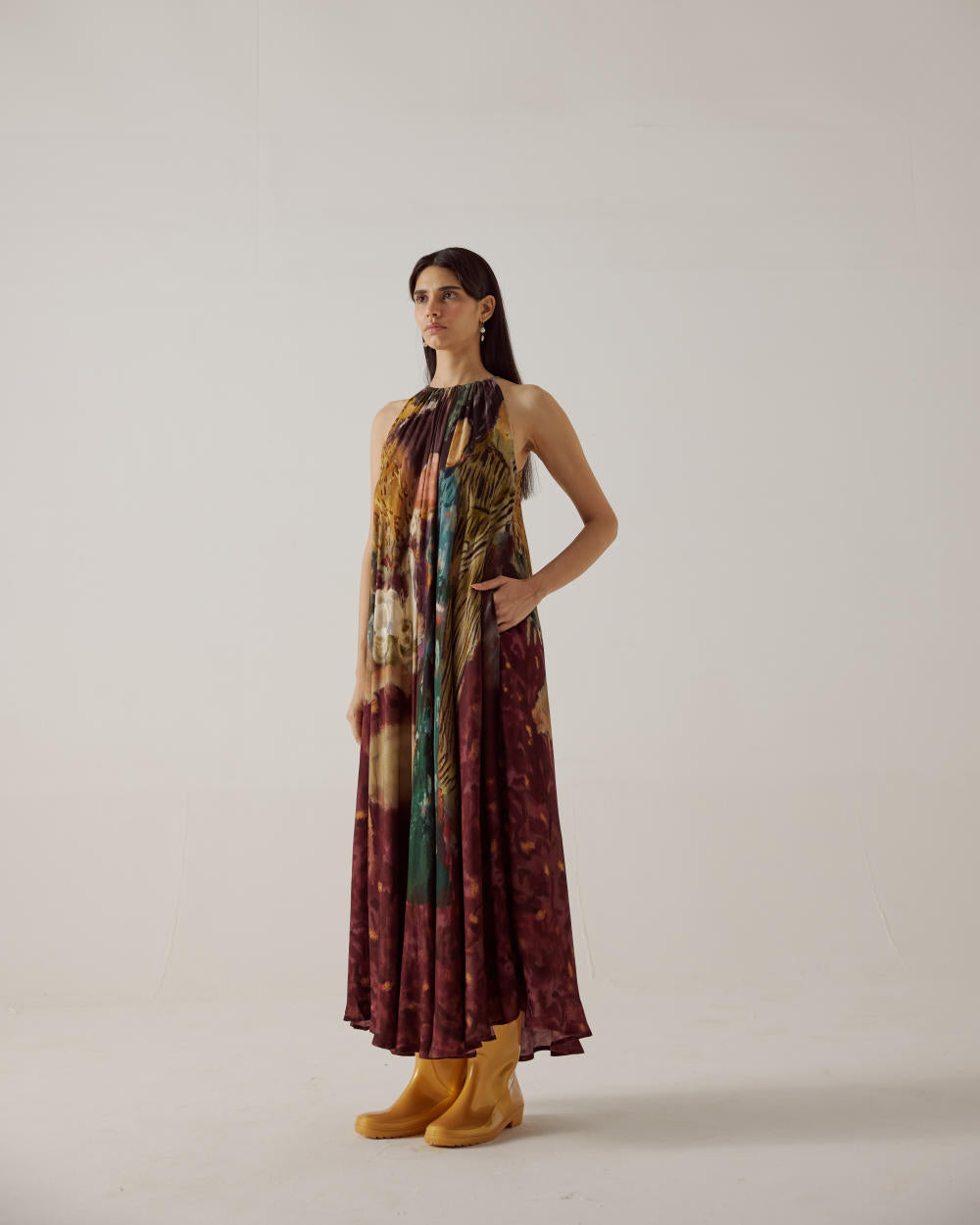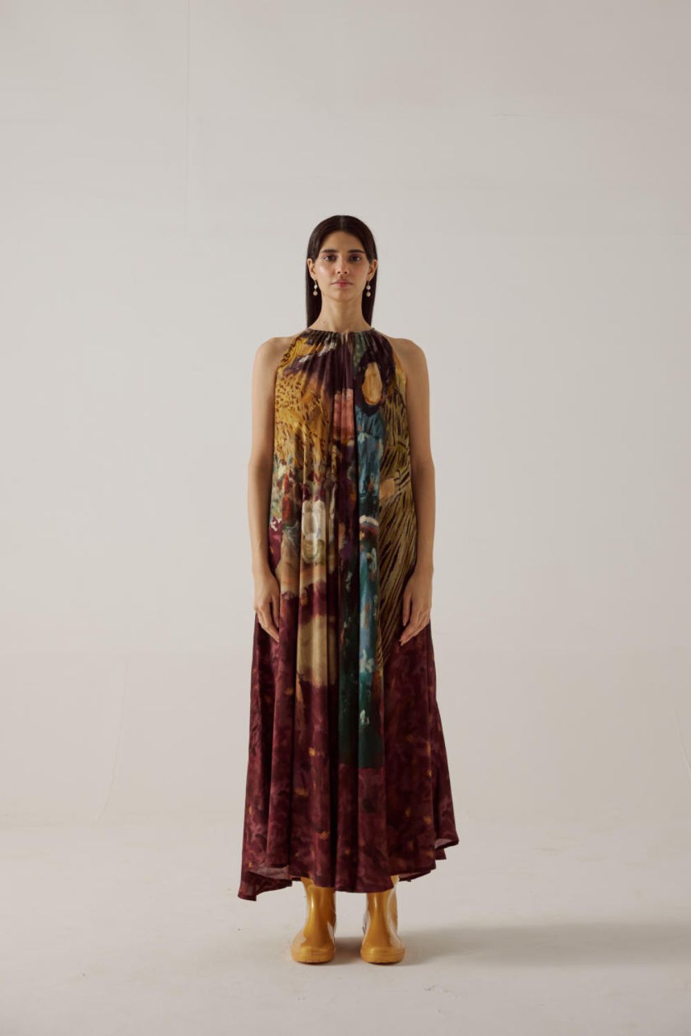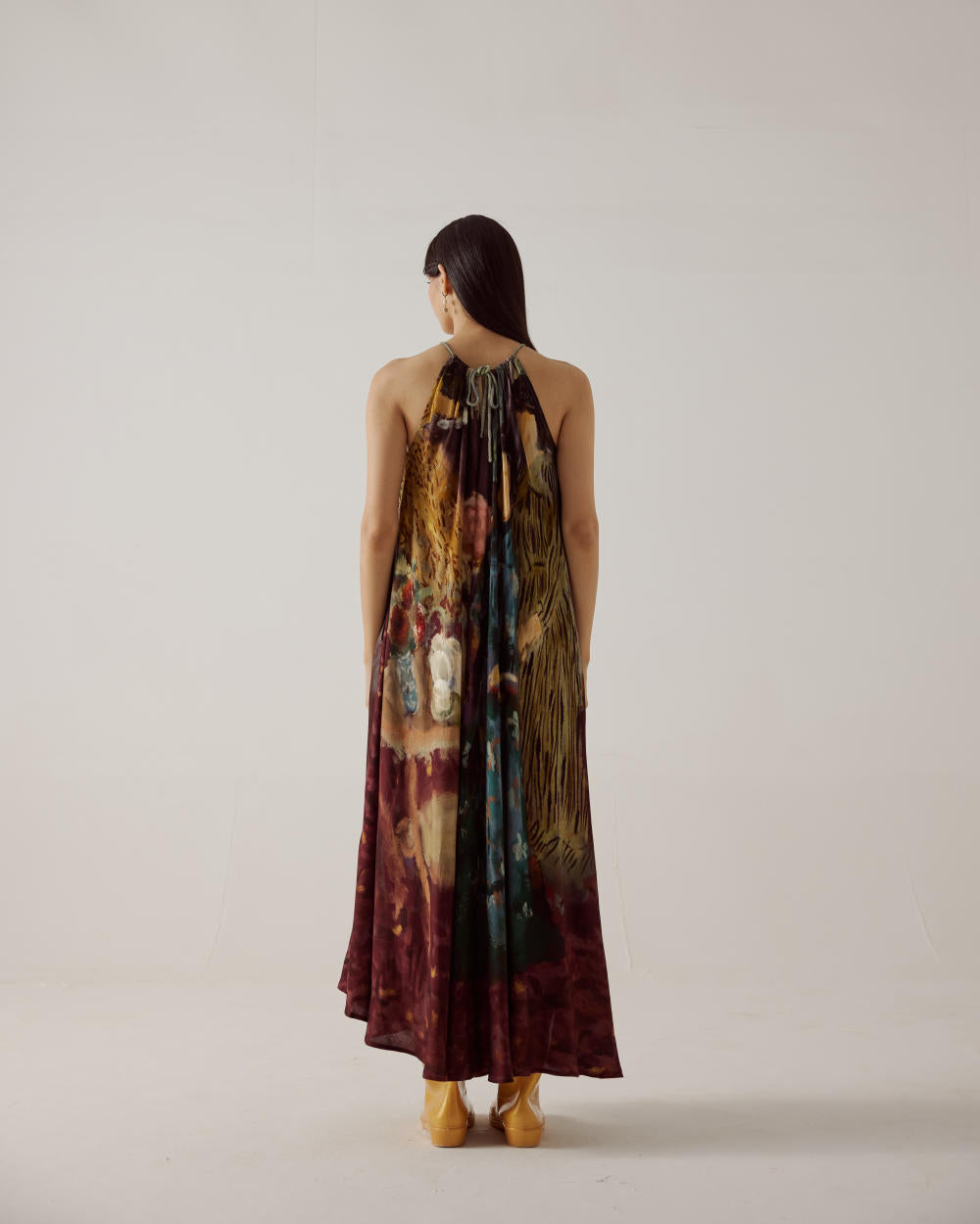 A flowy Dress crafted with careful attention to detail, the adjustable drawstring neckline allows for a customizable fit, ensuring comfort and style tailored to your preference. Its ankle length cut strikes the perfect balance between chic and practicality, while the sleeveless design provides freedom of movement and breathability.