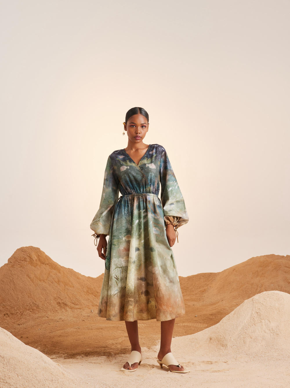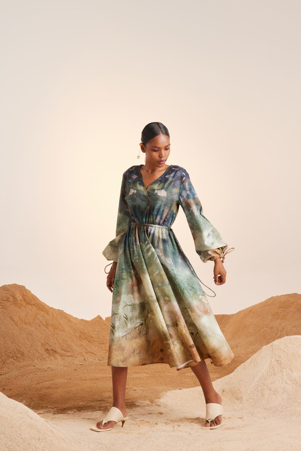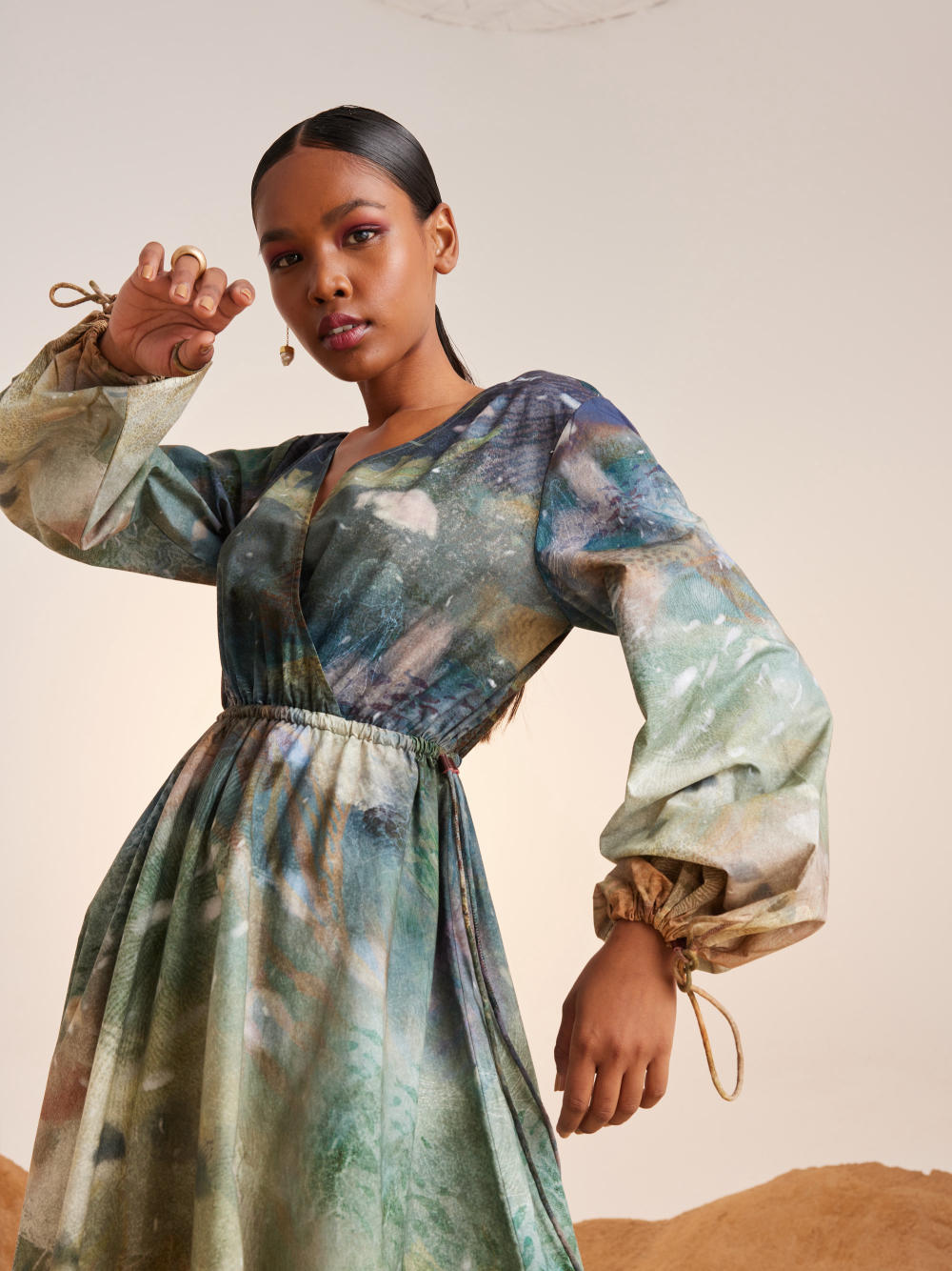 CORD blurs the line between art and attire in a way few labels dare to. Here, fabrics become canvases; illustrations—drawn by hand, steeped in imagination—flow across silhouettes that feel sculptural yet deeply wearable. Each piece has a texture of memory to it, as if it carries echoes of a past life, now reframed for a contemporary world.