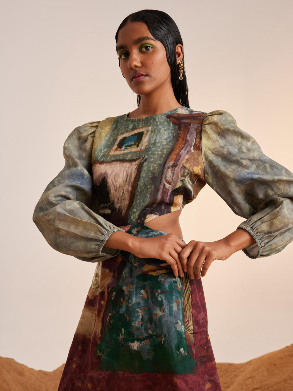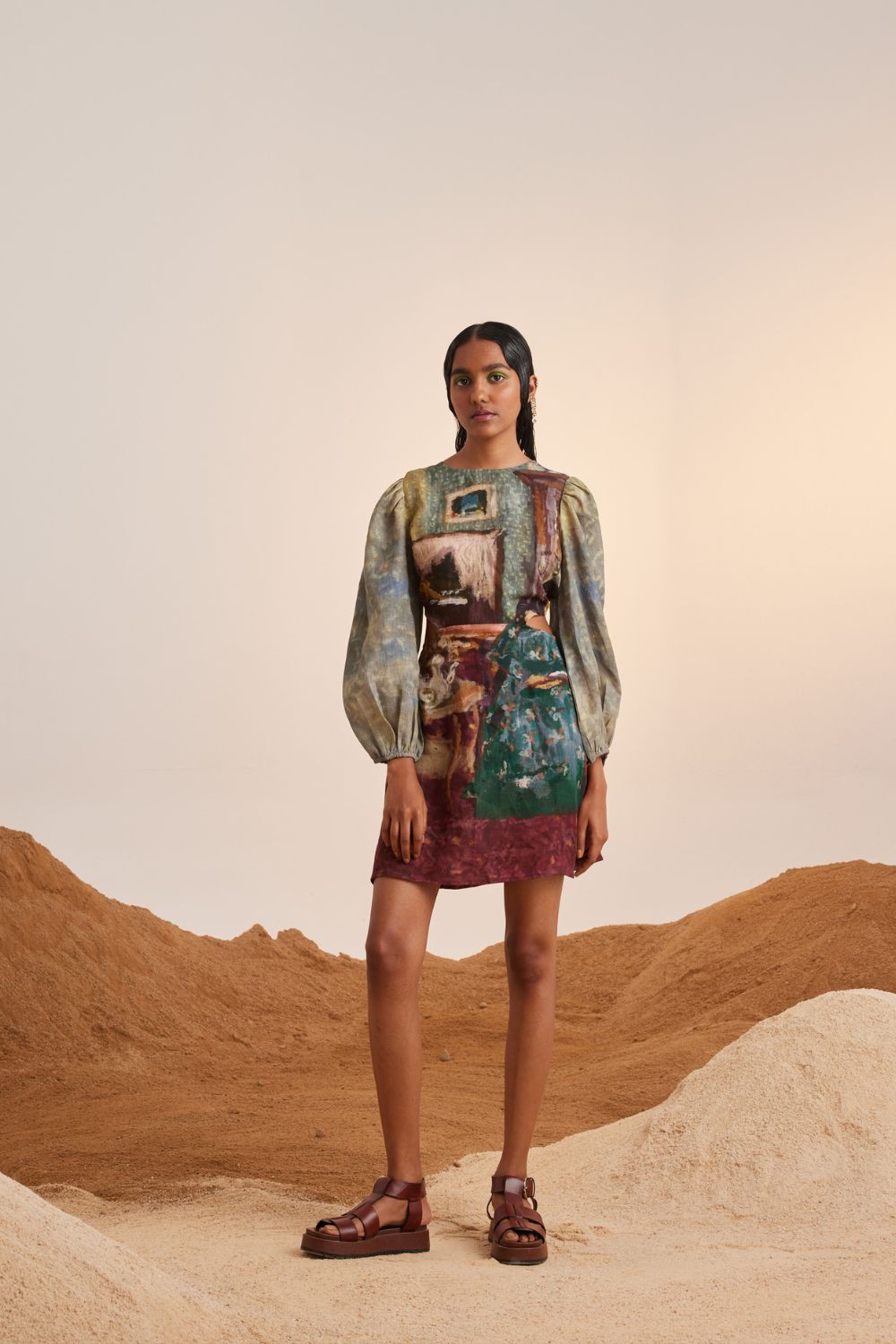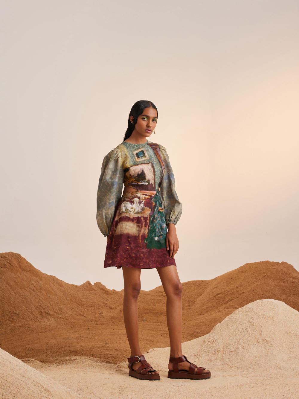 CORD blurs the line between art and attire in a way few labels dare to. Here, fabrics become canvases; illustrations—drawn by hand, steeped in imagination—flow across silhouettes that feel sculptural yet deeply wearable. Each piece has a texture of memory to it, as if it carries echoes of a past life, now reframed for a contemporary world.