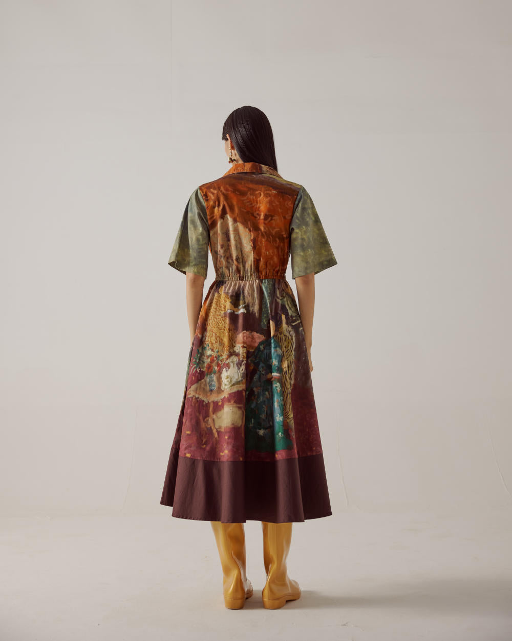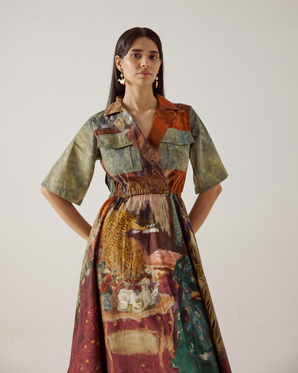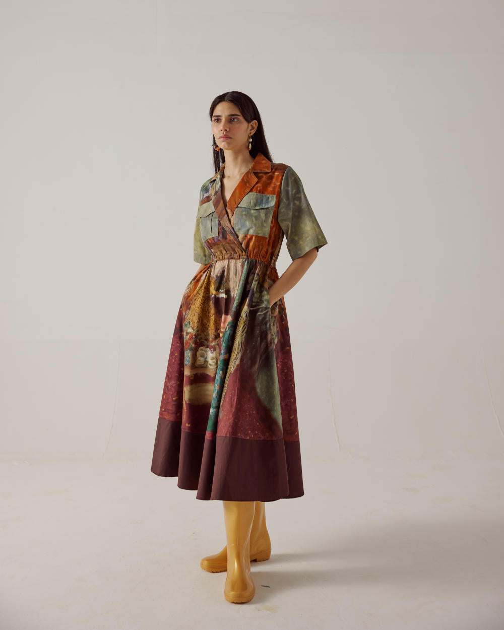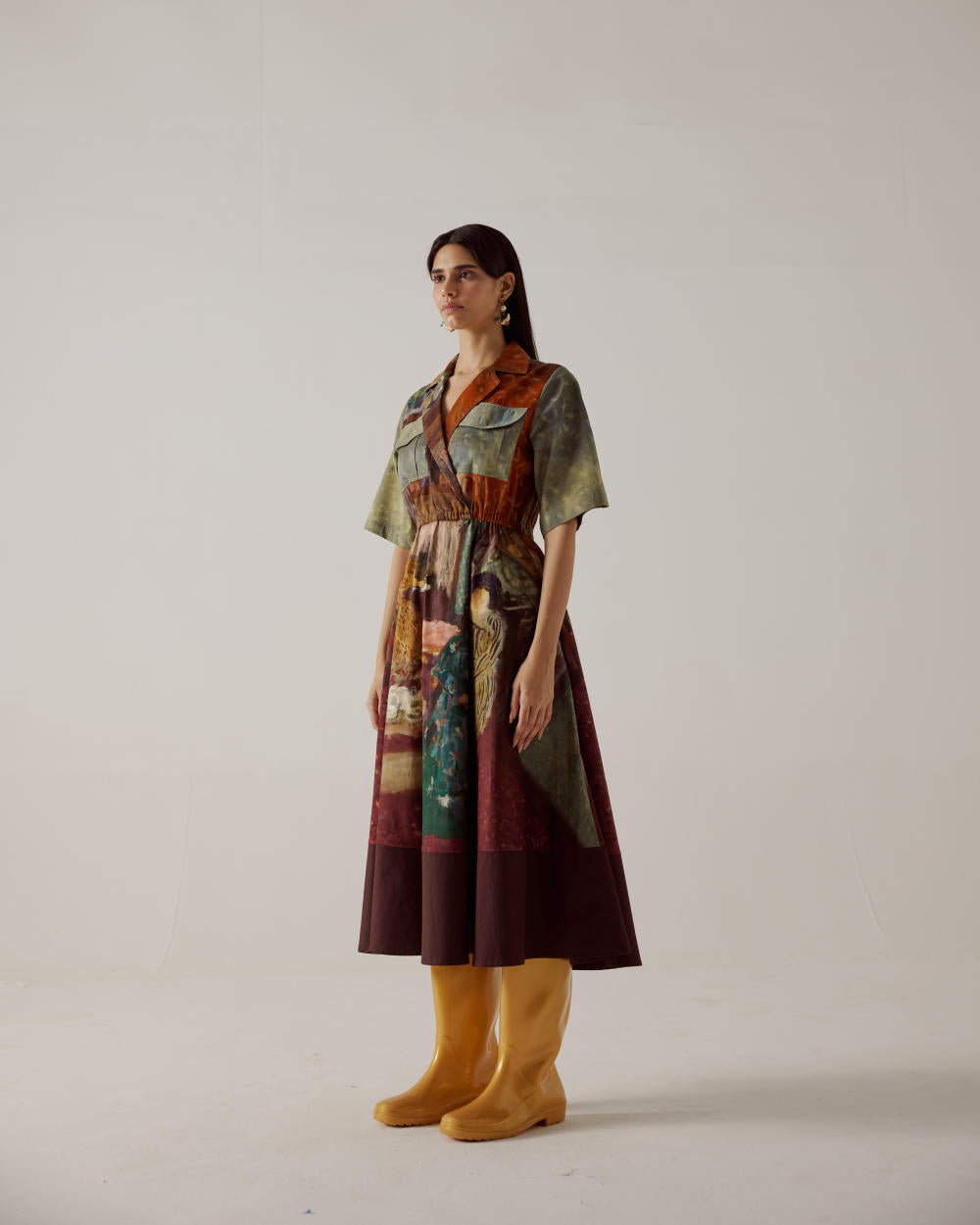 Introducing our striking Print Blocked Dress, a fusion of elegance and contemporary style. Crafted from cotton satin fabric, this dress exudes luxury and comfort. Its distinguished features include notched lapels and an elasticated waist, ensuring a flattering fit for all body types.