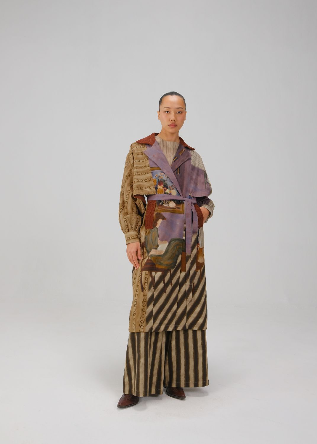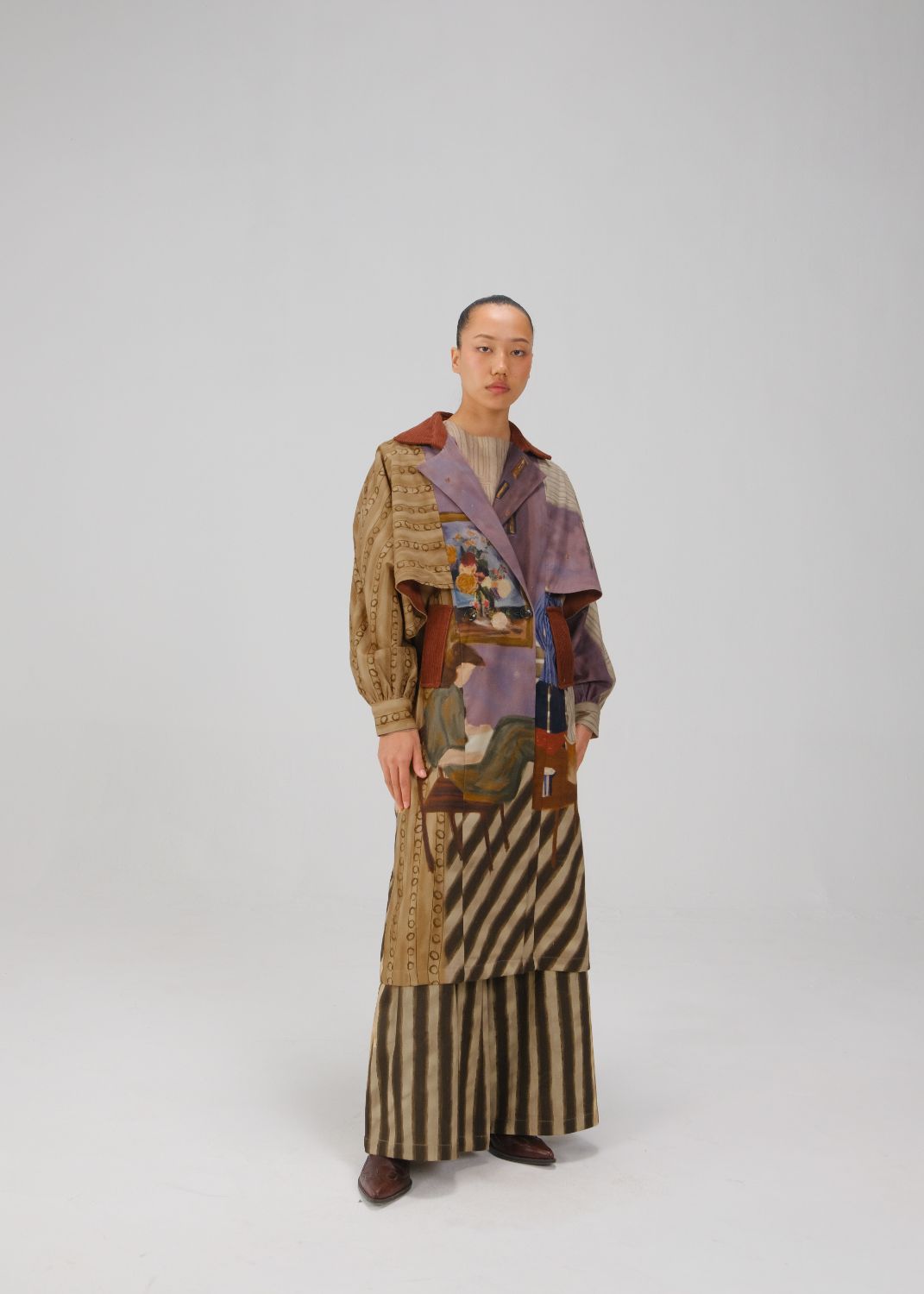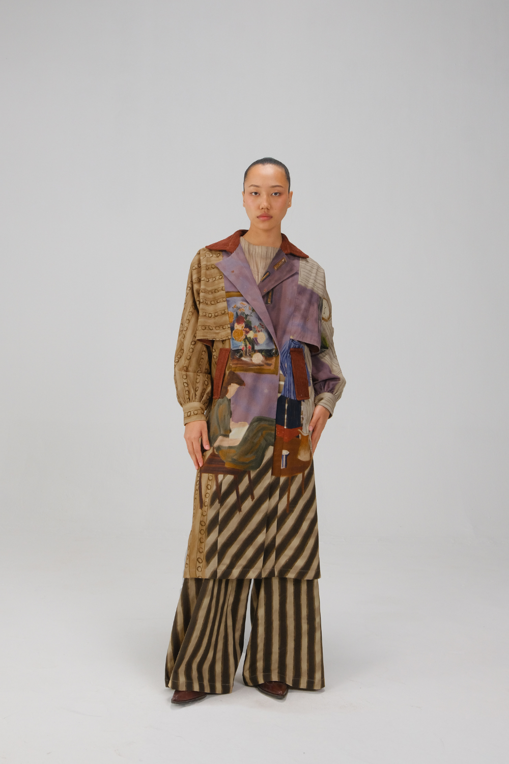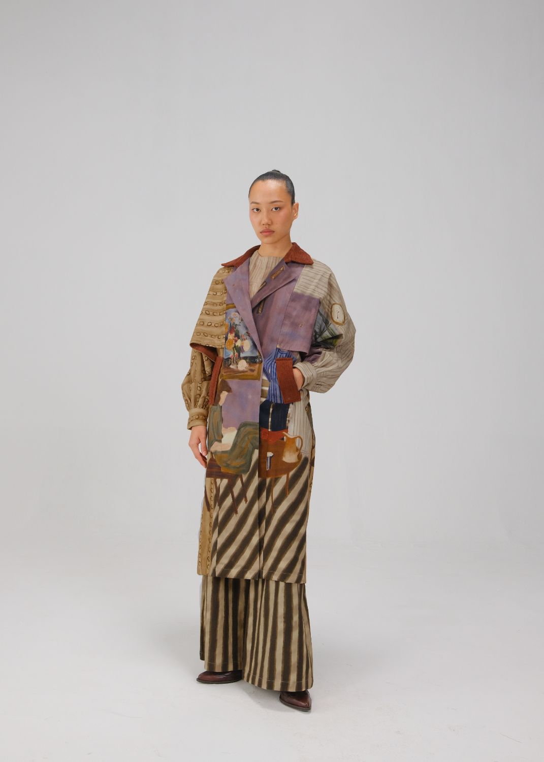 CORD blurs the line between art and attire in a way few labels dare to. Here, fabrics become canvases; illustrations—drawn by hand, steeped in imagination—flow across silhouettes that feel sculptural yet deeply wearable. Each piece has a texture of memory to it, as if it carries echoes of a past life, now reframed for a contemporary world.
