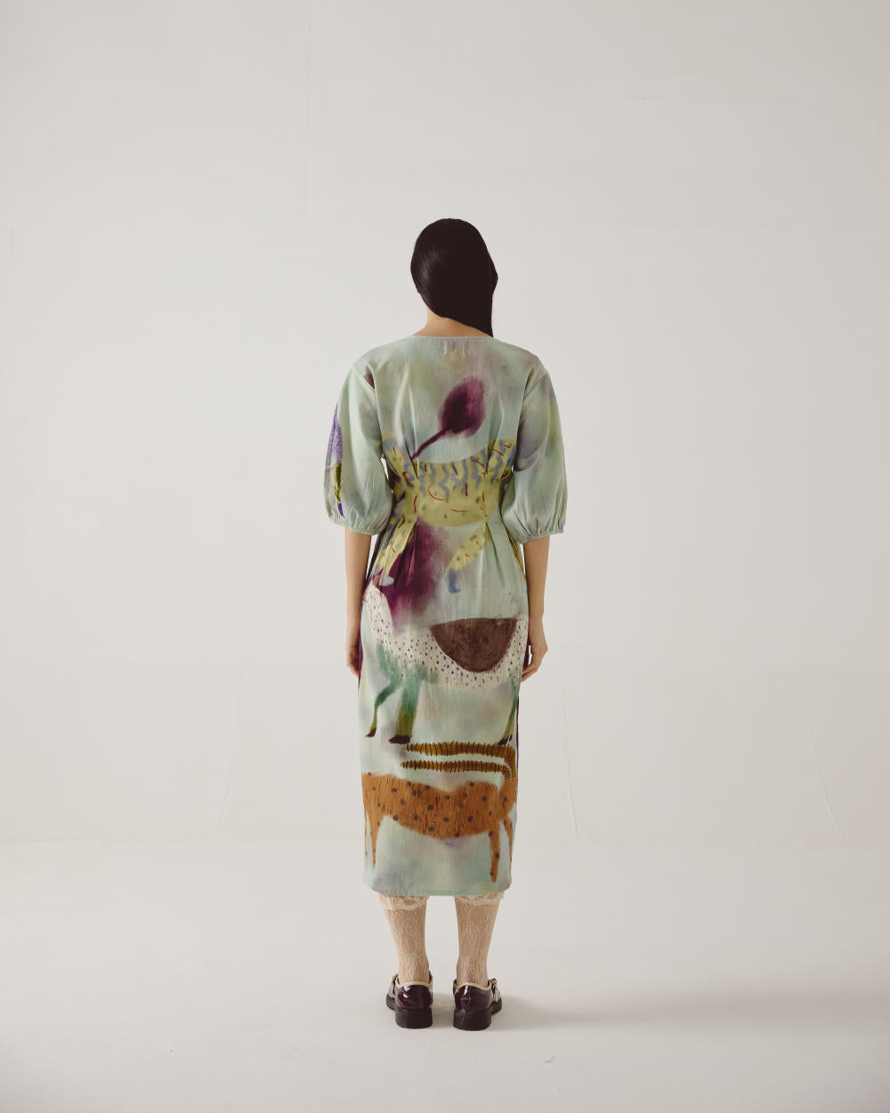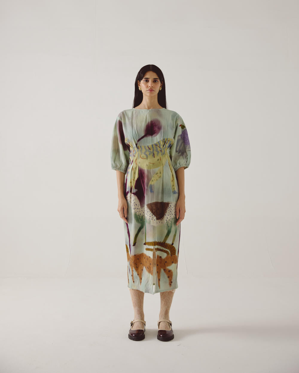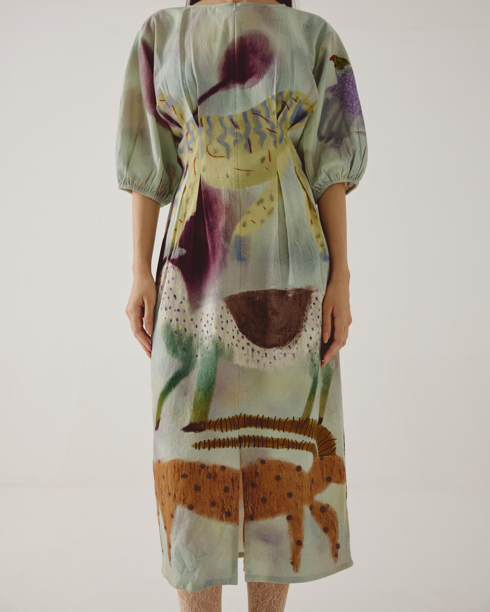 CORD blurs the line between art and attire in a way few labels dare to. Here, fabrics become canvases; illustrations—drawn by hand, steeped in imagination—flow across silhouettes that feel sculptural yet deeply wearable. Each piece has a texture of memory to it, as if it carries echoes of a past life, now reframed for a contemporary world.