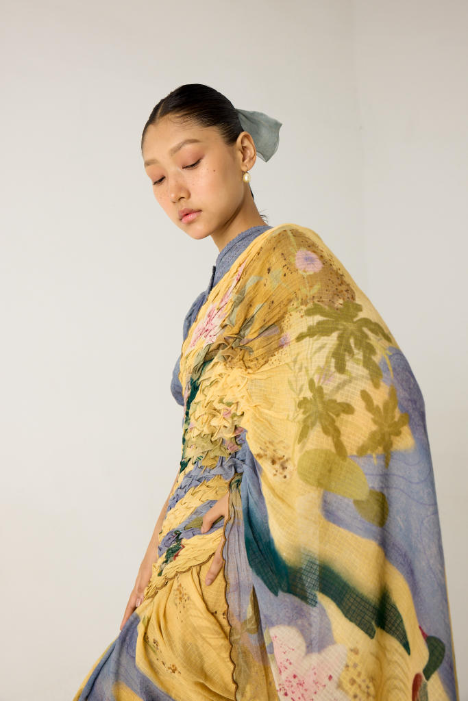 CORD blurs the line between art and attire in a way few labels dare to. Here, fabrics become canvases; illustrations—drawn by hand, steeped in imagination—flow across silhouettes that feel sculptural yet deeply wearable. Each piece has a texture of memory to it, as if it carries echoes of a past life, now reframed for a contemporary world.