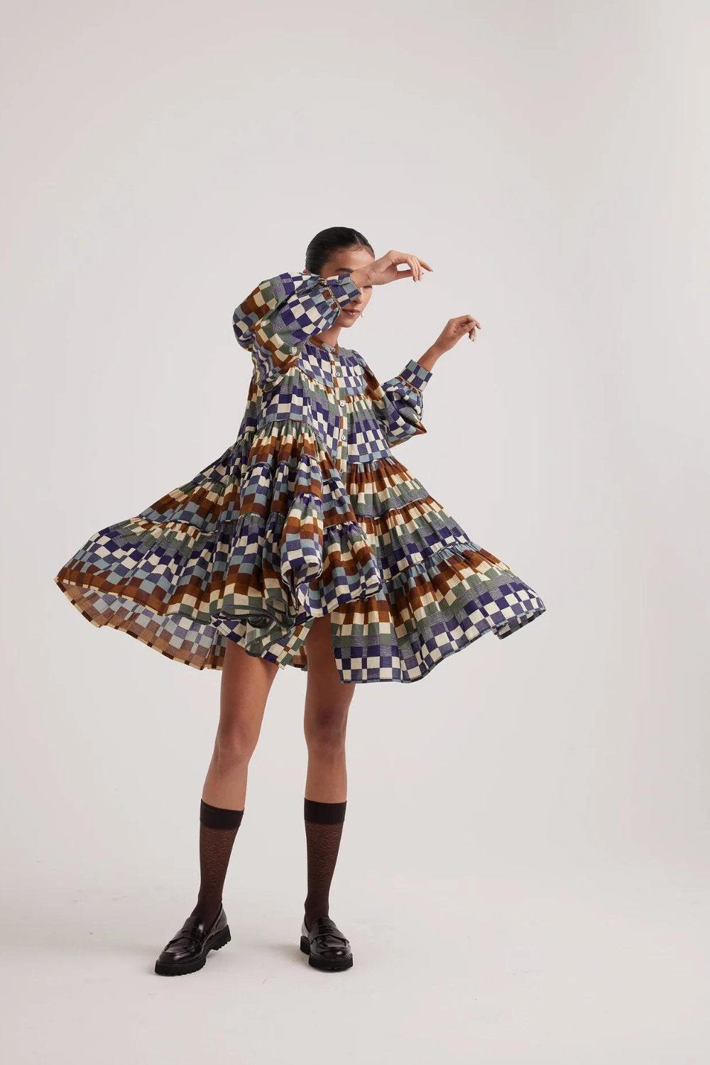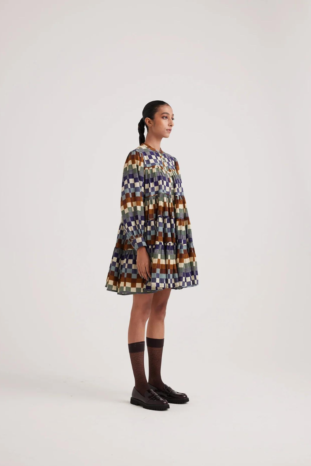 The Tier dress is a relaxed fit dress made in cotton, consisting of piping details. Comes with a slip made up of cotton voile for better comfort.