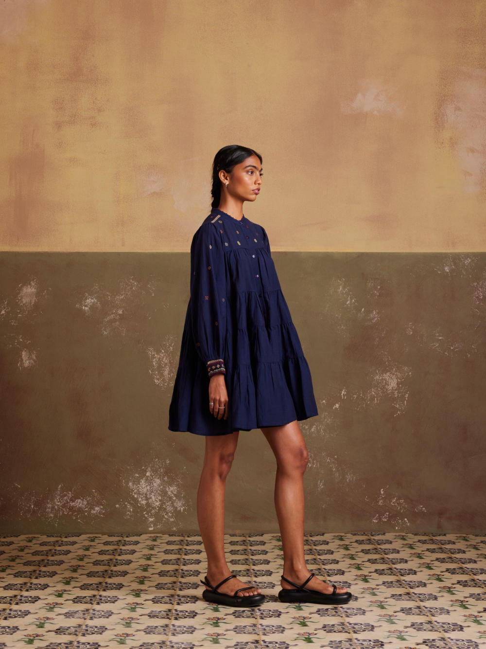 With a hand embroidered yoke and cuff, this relaxed fit dress is made in 100% cotton featuring lace insert details. Slip: Comes with a slip made up of cotton voile for better comfort.