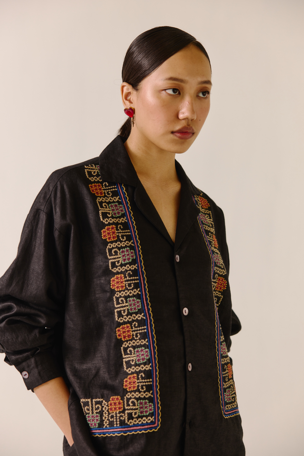 Color/Pattern: Black (cross-stitched embroidery)