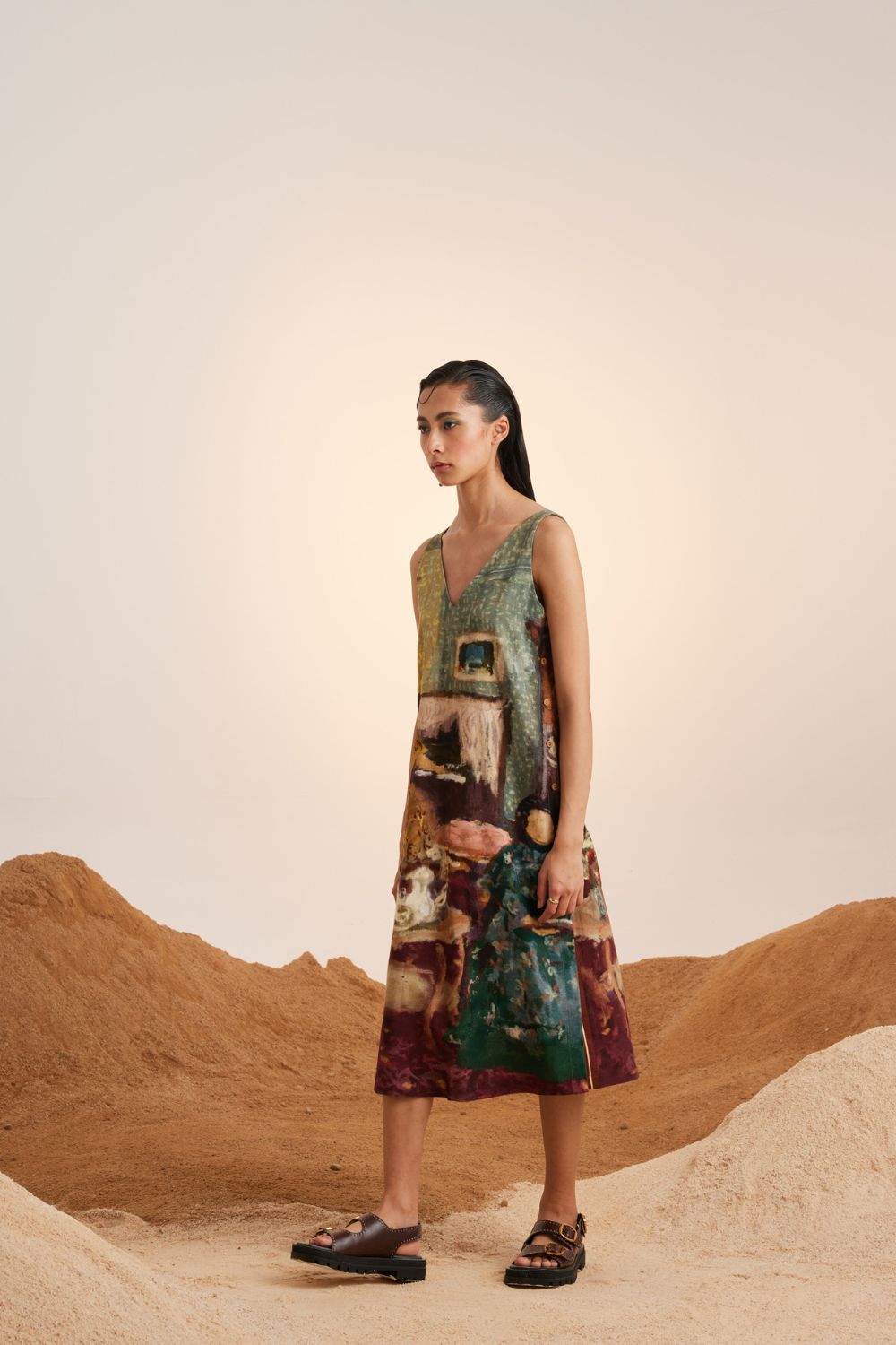 CORD blurs the line between art and attire in a way few labels dare to. Here, fabrics become canvases; illustrations—drawn by hand, steeped in imagination—flow across silhouettes that feel sculptural yet deeply wearable. Each piece has a texture of memory to it, as if it carries echoes of a past life, now reframed for a contemporary world.