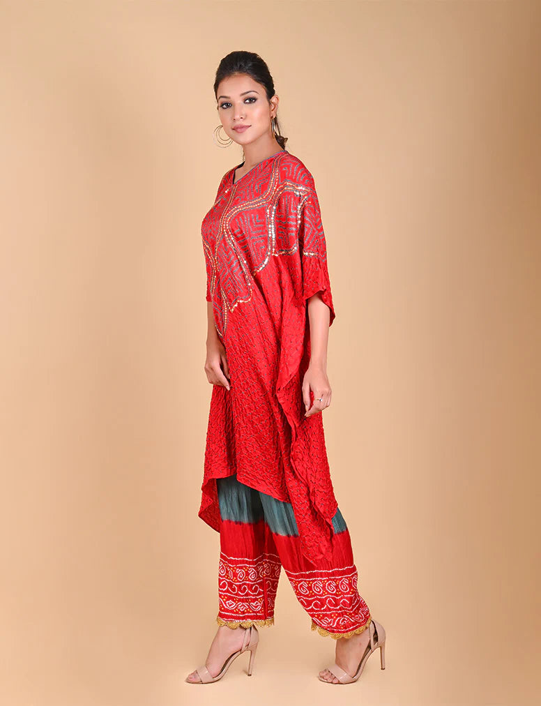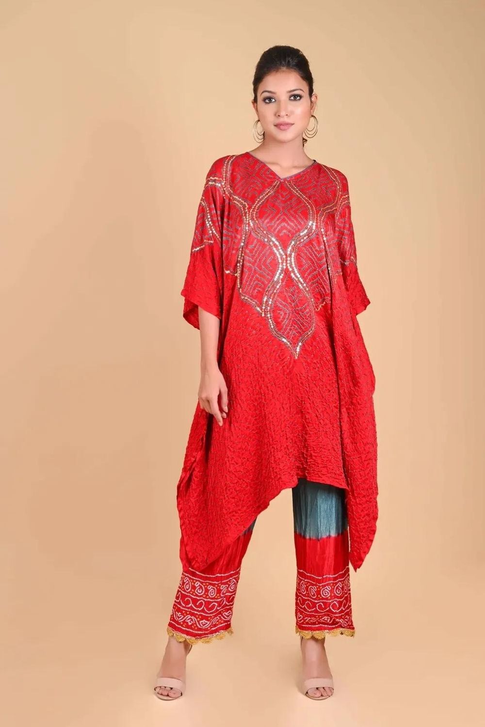 Bandhani palazzo edged with a gold scallop border. Can be worn with any of our kaftans or tunics.