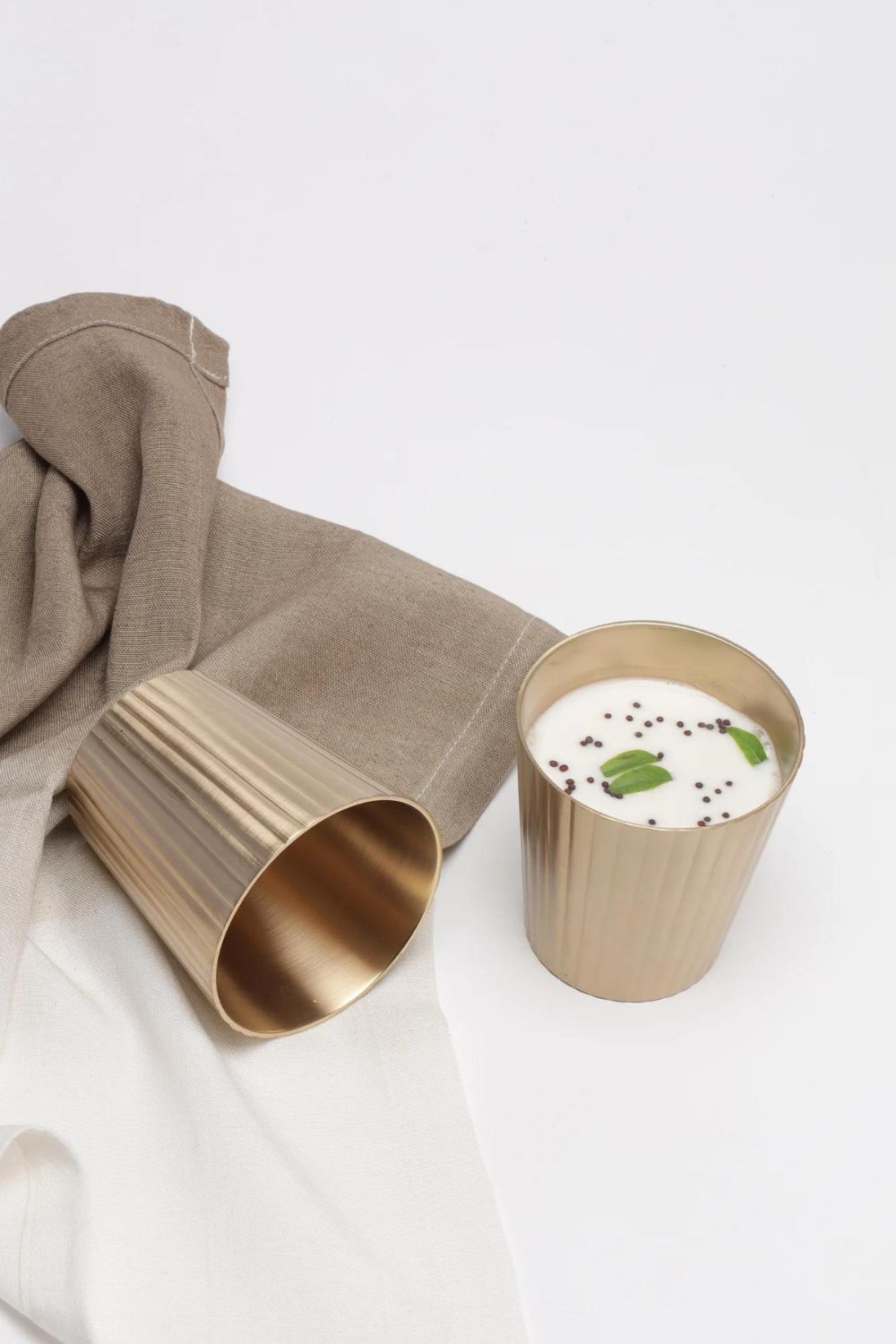 Made in pure brass, the Avisa tumblers draw inspiration from the brilliant reflection of the sun on top of the ocean bed during golden hour. Featuring a gentle repeat pattern all around, these lines are reminiscent of the rays of the sun and the relentless flow of ocean waves. Handmade in India.
