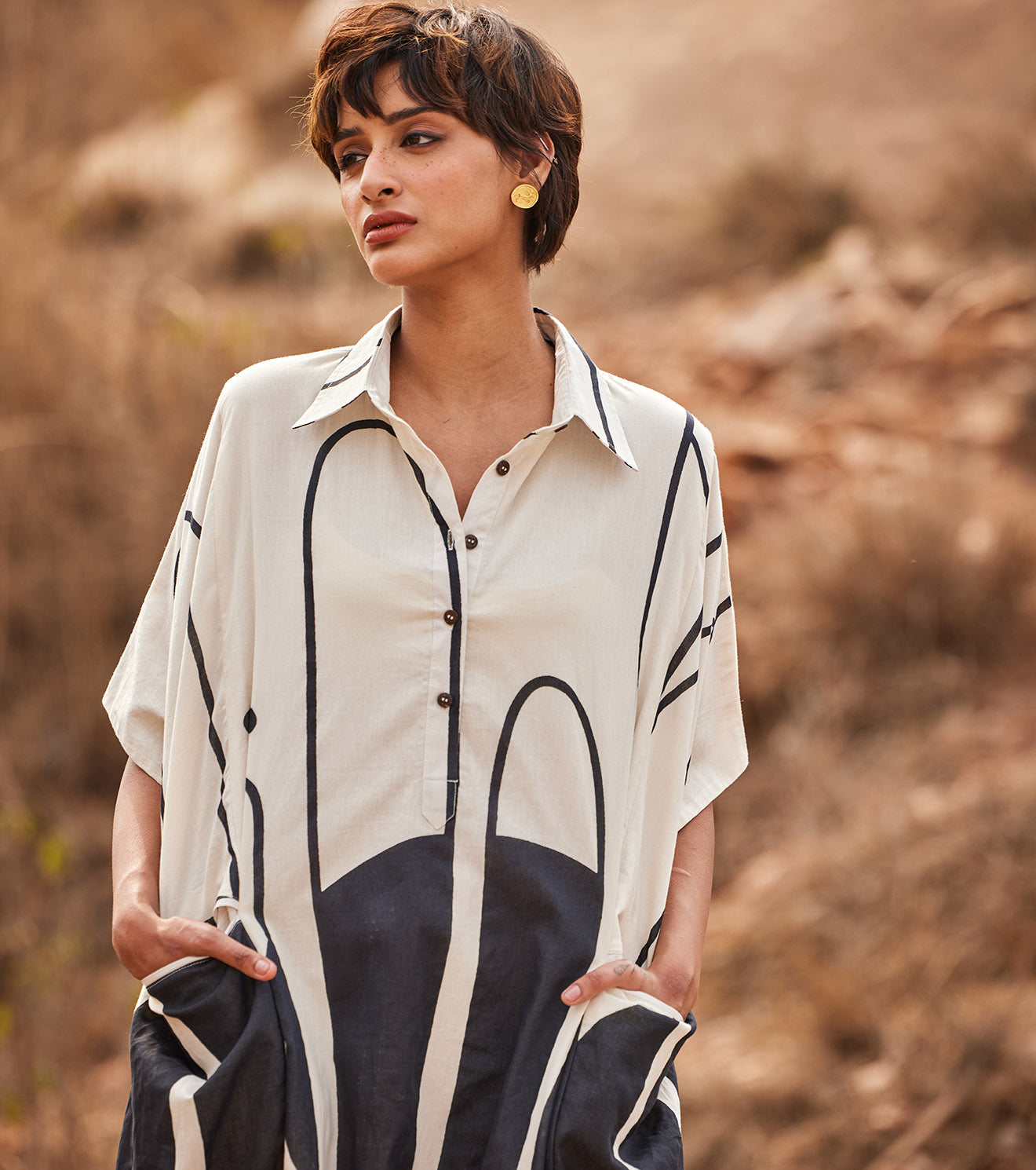 Each piece is grounded in India’s textile heritage yet designed for a woman who moves easily between cultures and climates. The brand’s commitment to homegrown cotton, artisanal processes, and clean, breathable shapes has made these garments not just beautiful, but deeply wearable.