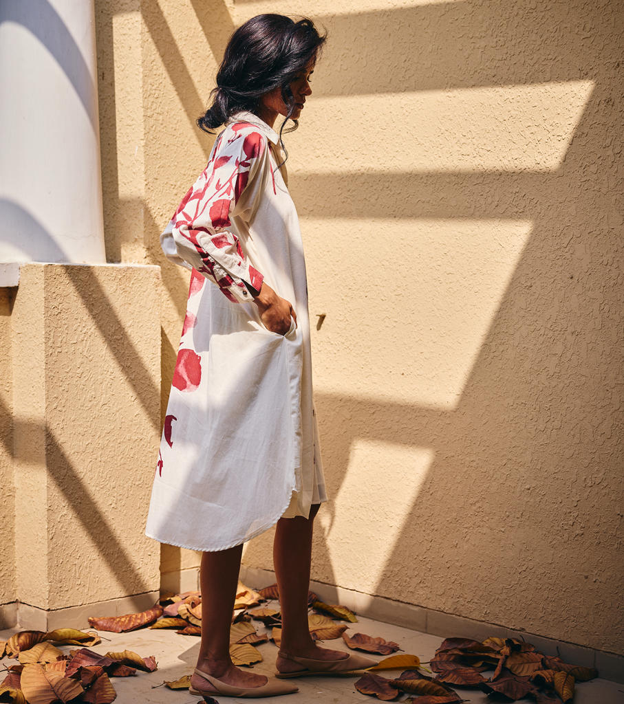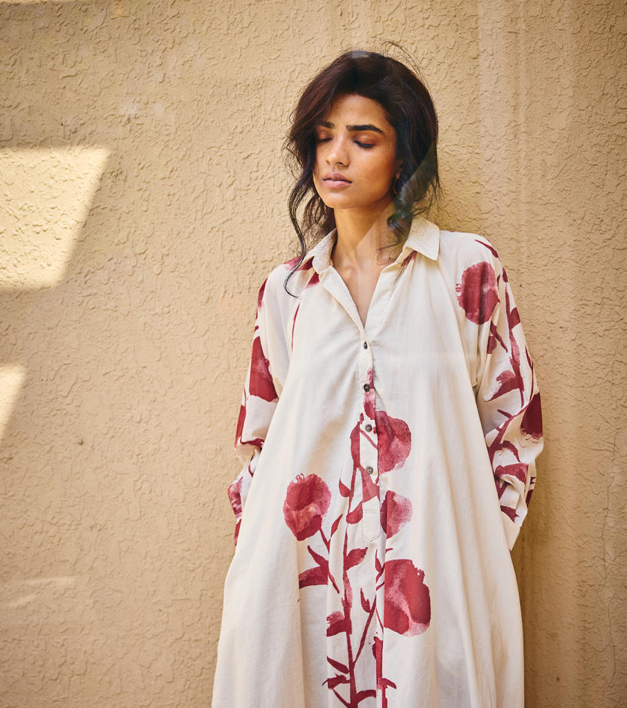 Each piece is grounded in India’s textile heritage yet designed for a woman who moves easily between cultures and climates. The brand’s commitment to homegrown cotton, artisanal processes, and clean, breathable shapes has made these garments not just beautiful, but deeply wearable.
