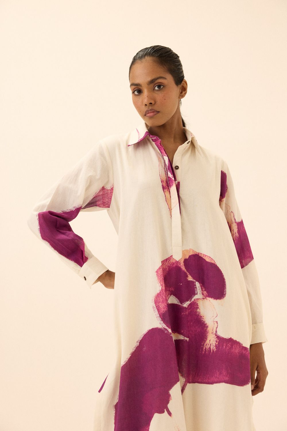 Each piece is grounded in India’s textile heritage yet designed for a woman who moves easily between cultures and climates. The brand’s commitment to homegrown cotton, artisanal processes, and clean, breathable shapes has made these garments not just beautiful, but deeply wearable.
