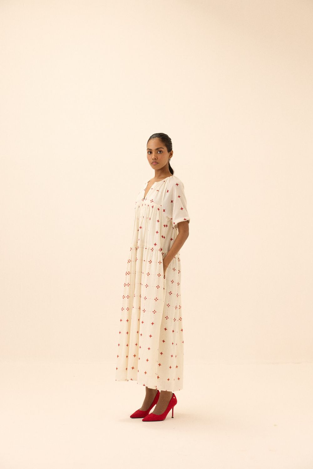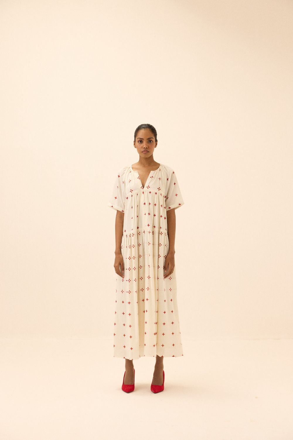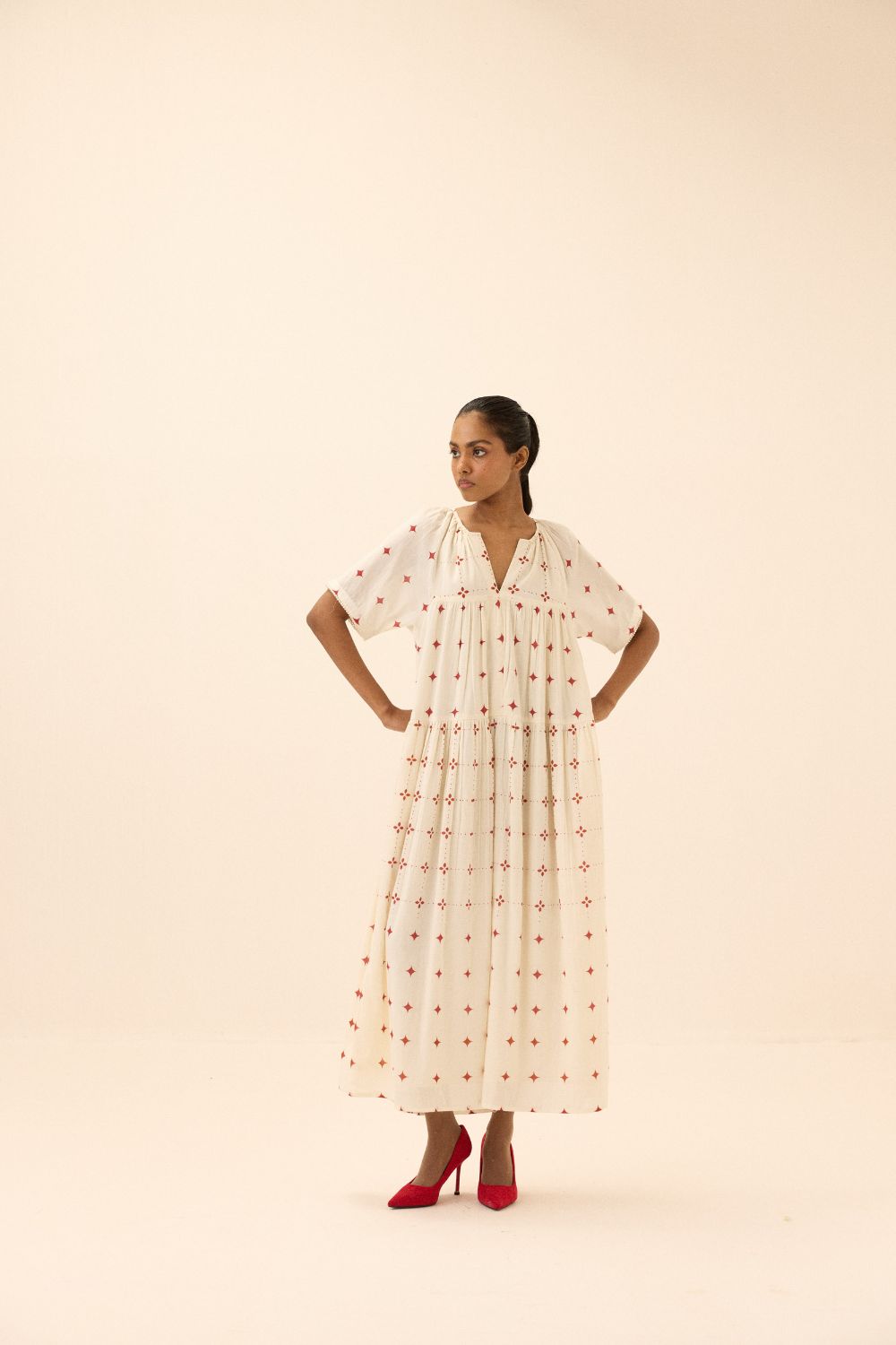 Each piece is grounded in India’s textile heritage yet designed for a woman who moves easily between cultures and climates. The brand’s commitment to homegrown cotton, artisanal processes, and clean, breathable shapes has made these garments not just beautiful, but deeply wearable.