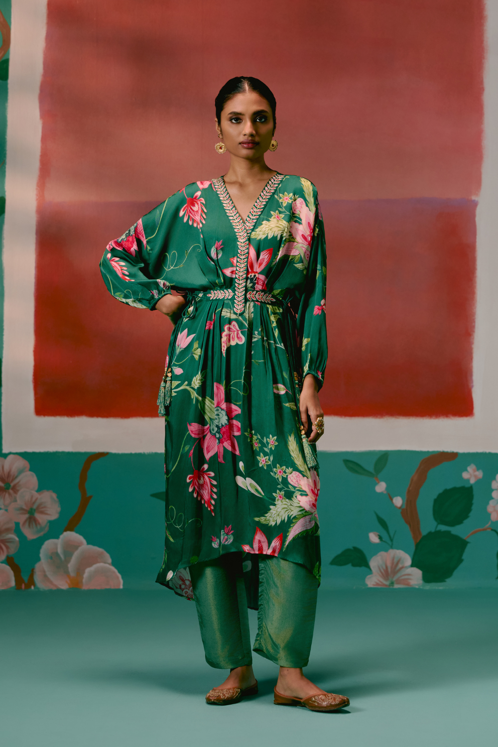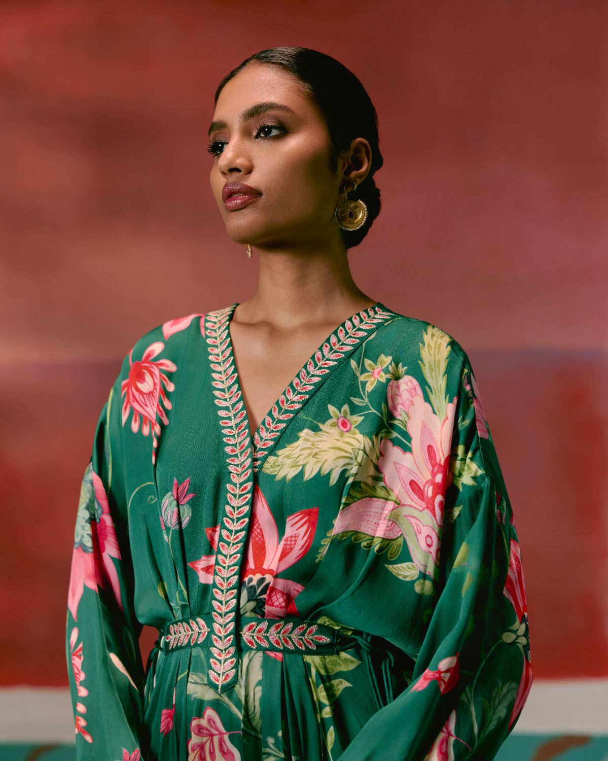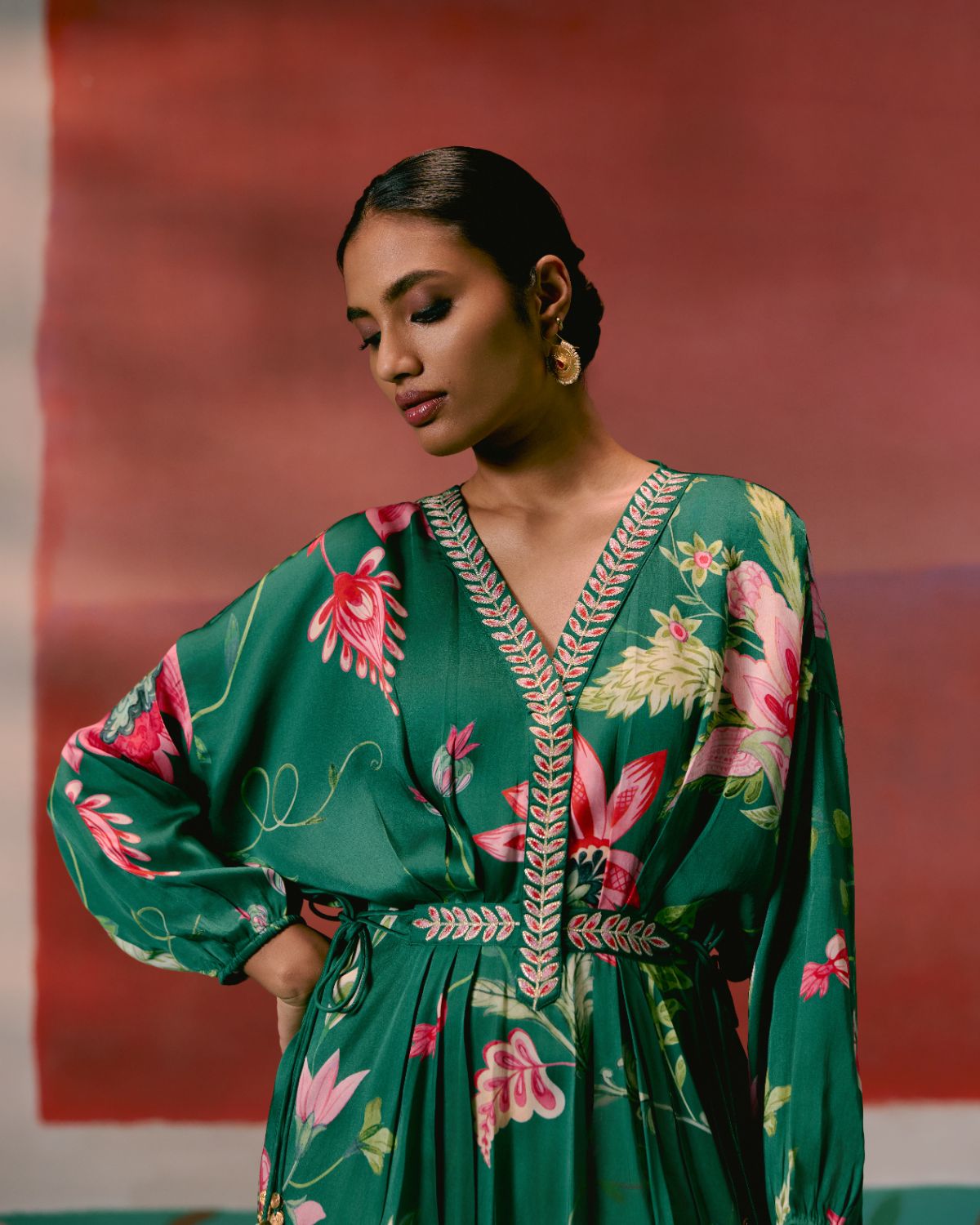 Effortlessly elegant, the Green Chintz Kaftan Set is crafted for a luxe festive feel.