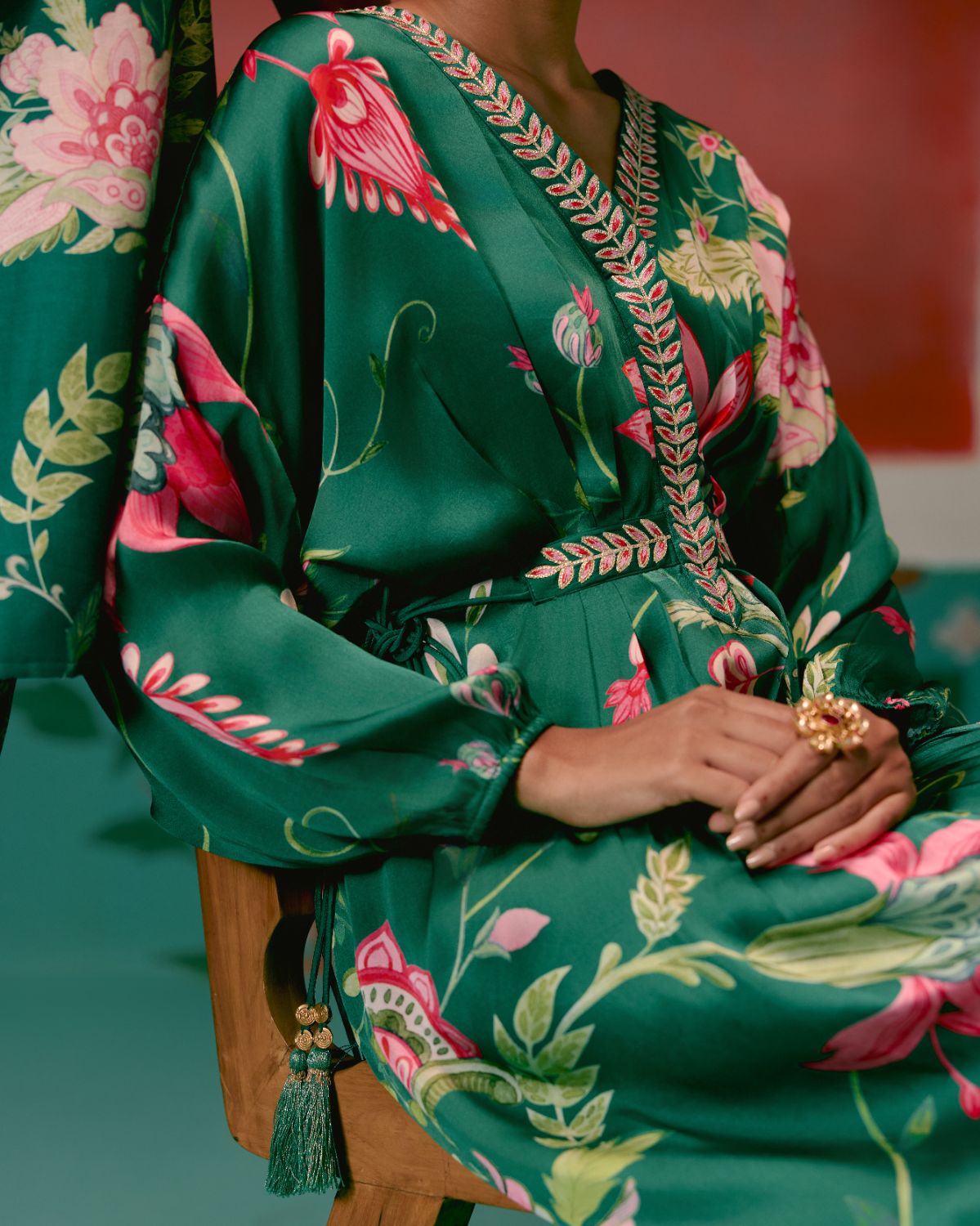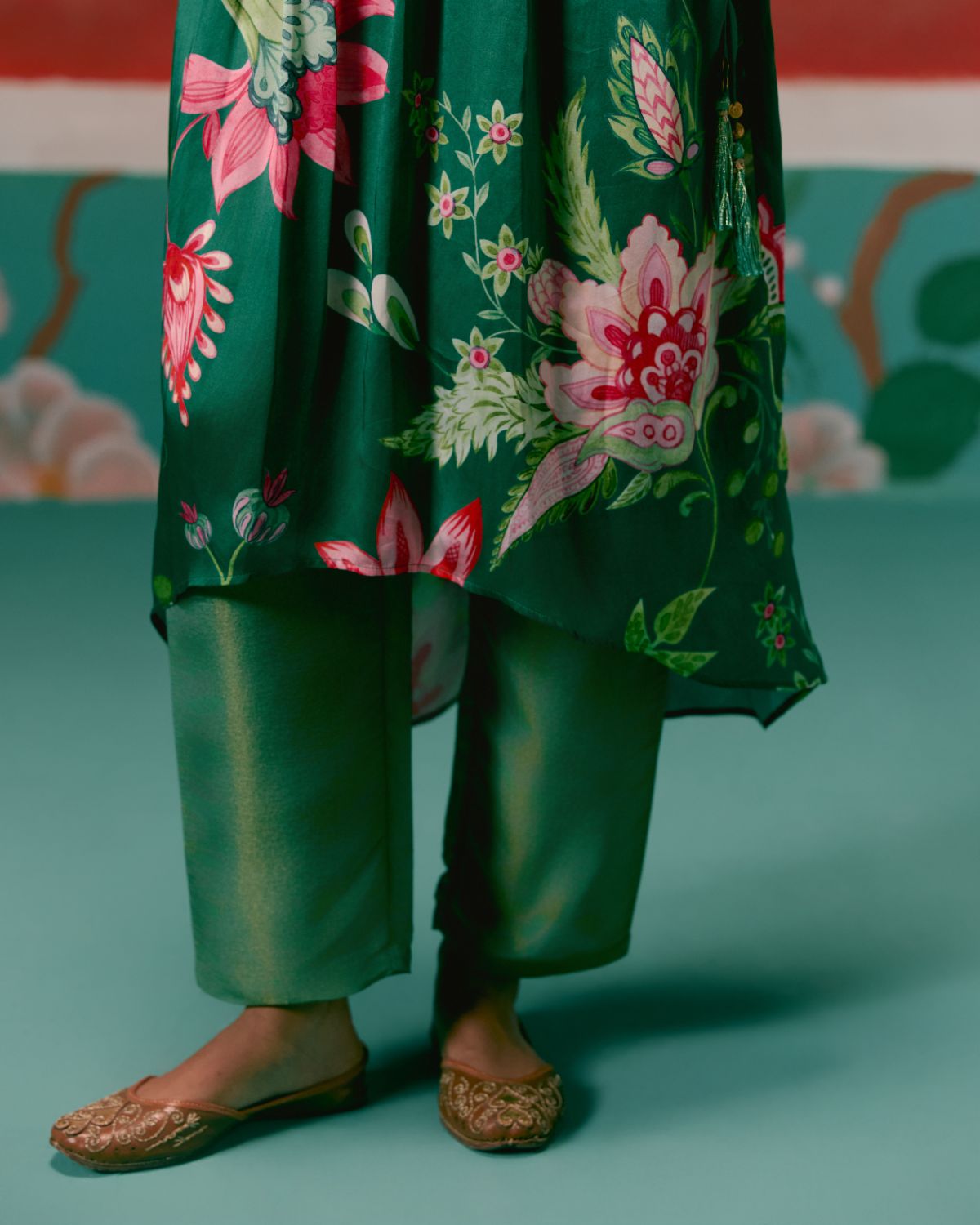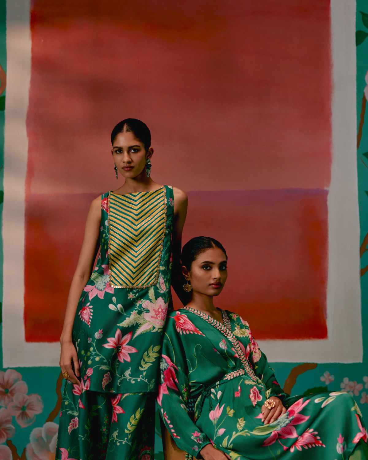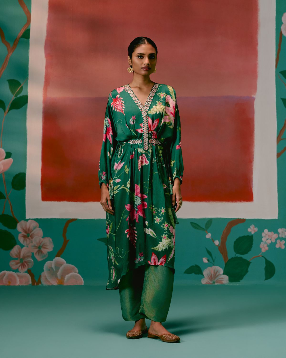 Effortlessly elegant, the Green Chintz Kaftan Set is crafted for a luxe festive feel.