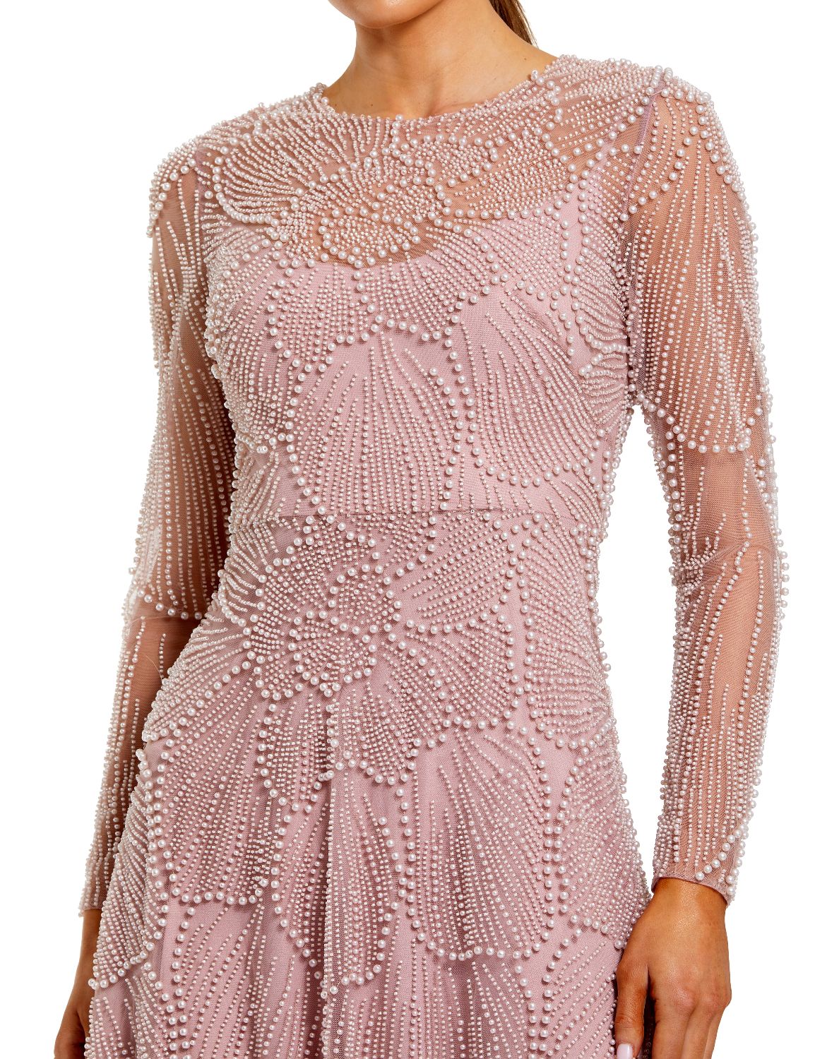 Intricate flower petal design crafted from pearl and beaded embellishments