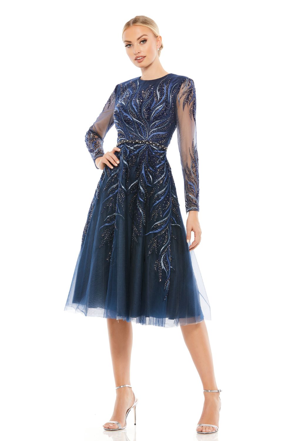 sleeves and an elegant tea-length skirt