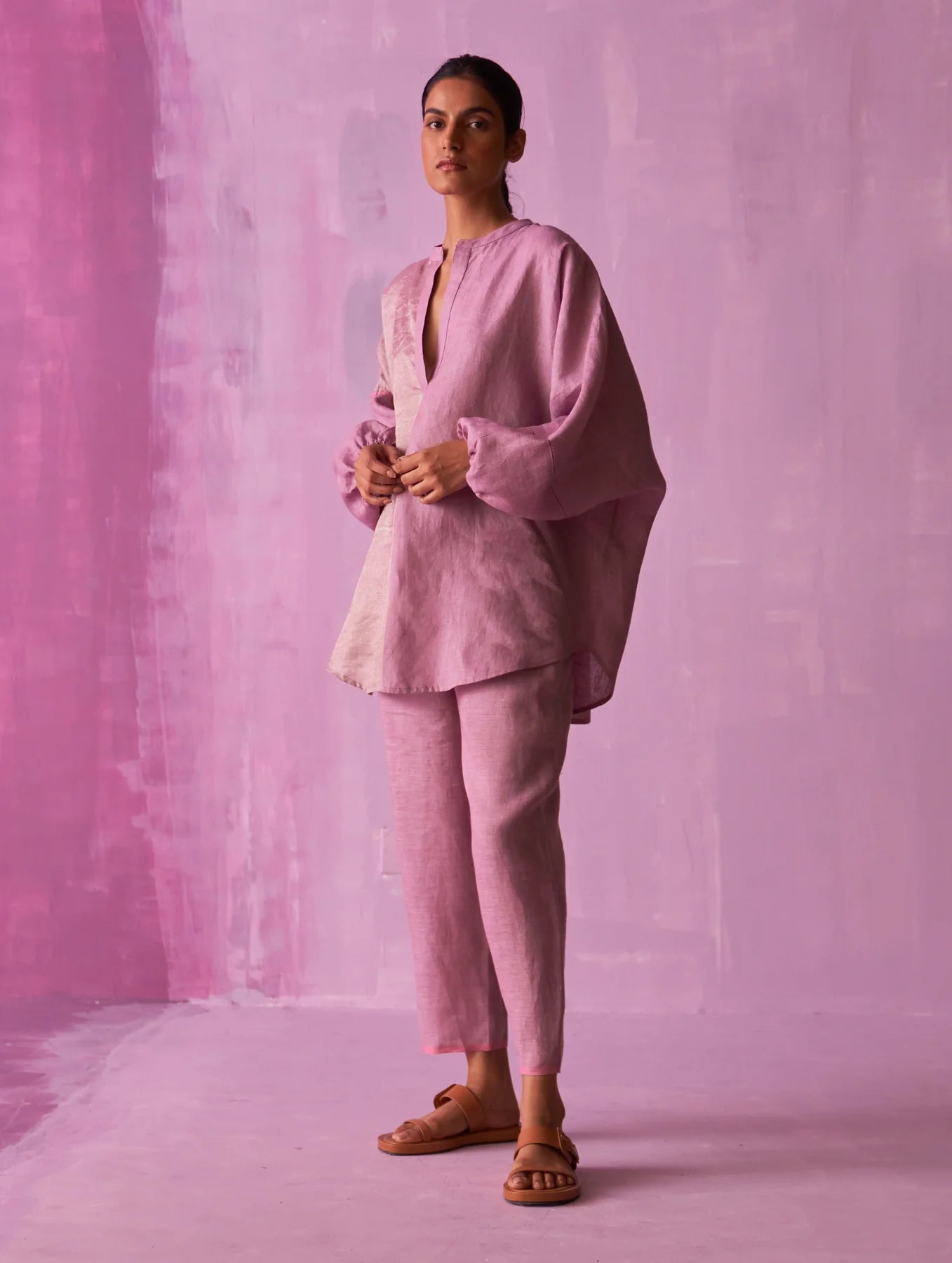 Their signature linens soften beautifully with time, eventually returning to the earth. They work with eri (ahimsa) silk, celebrated for its strength and gentle texture, and craft thoughtful blends of viscose, cotton, silk, and linen for pieces designed to last. Yarn-dyed techniques minimise chemical use and create the subtle, heathered tones that have become a quiet Manan signature.