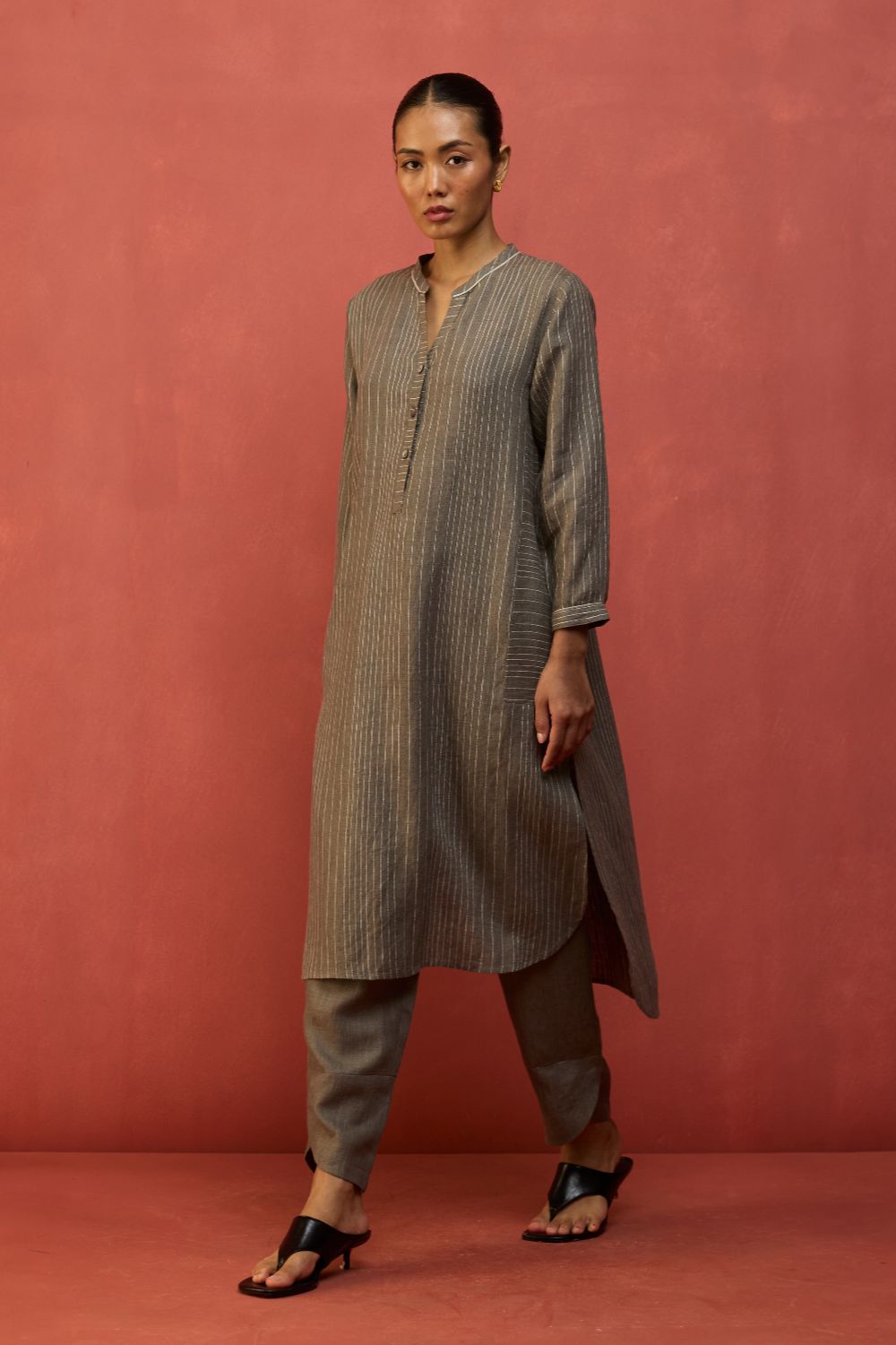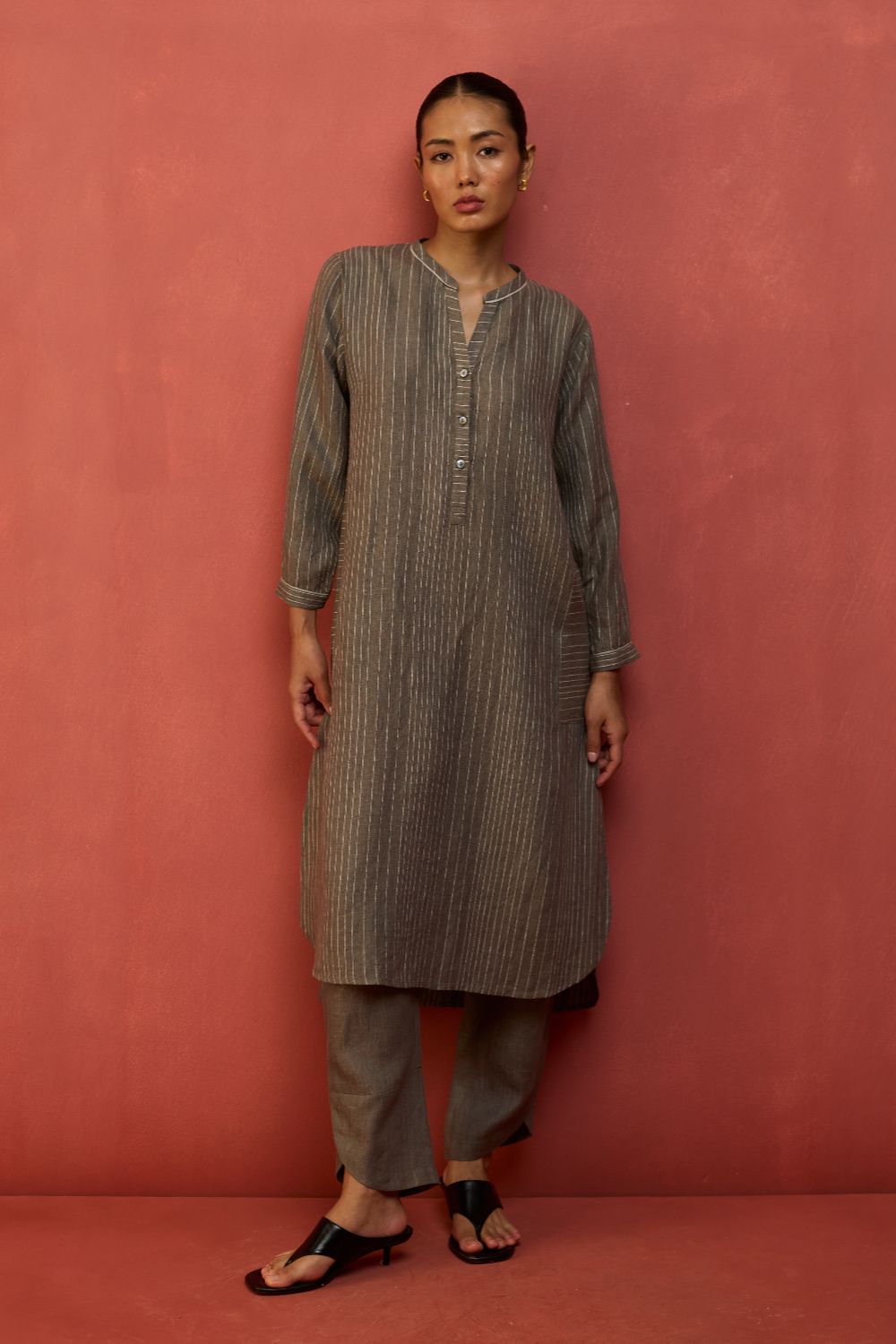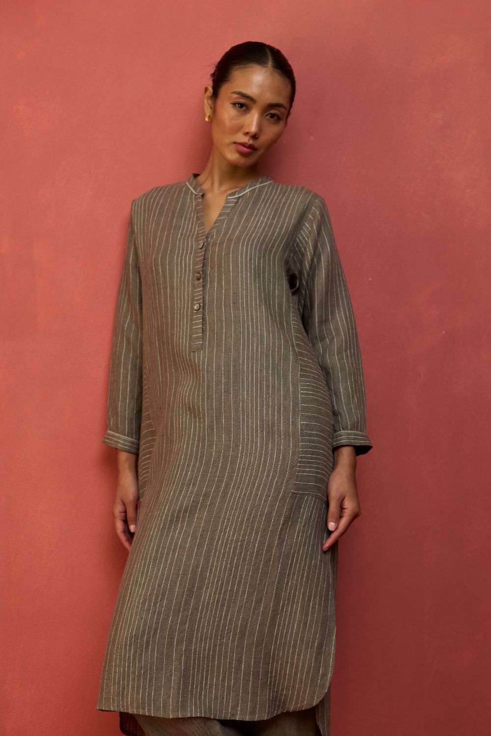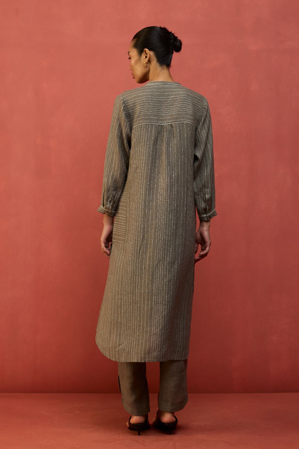 Bunka Stripe Linen Kurta Set - Grey