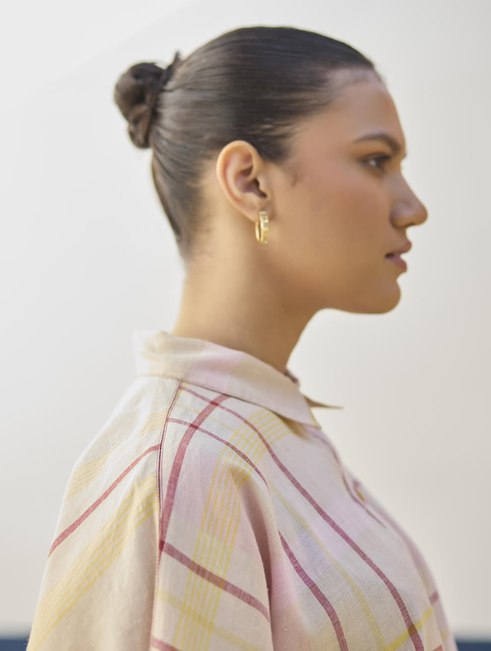 Their signature linens soften beautifully with time, eventually returning to the earth. They work with eri (ahimsa) silk, celebrated for its strength and gentle texture, and craft thoughtful blends of viscose, cotton, silk, and linen for pieces designed to last. Yarn-dyed techniques minimise chemical use and create the subtle, heathered tones that have become a quiet Manan signature.