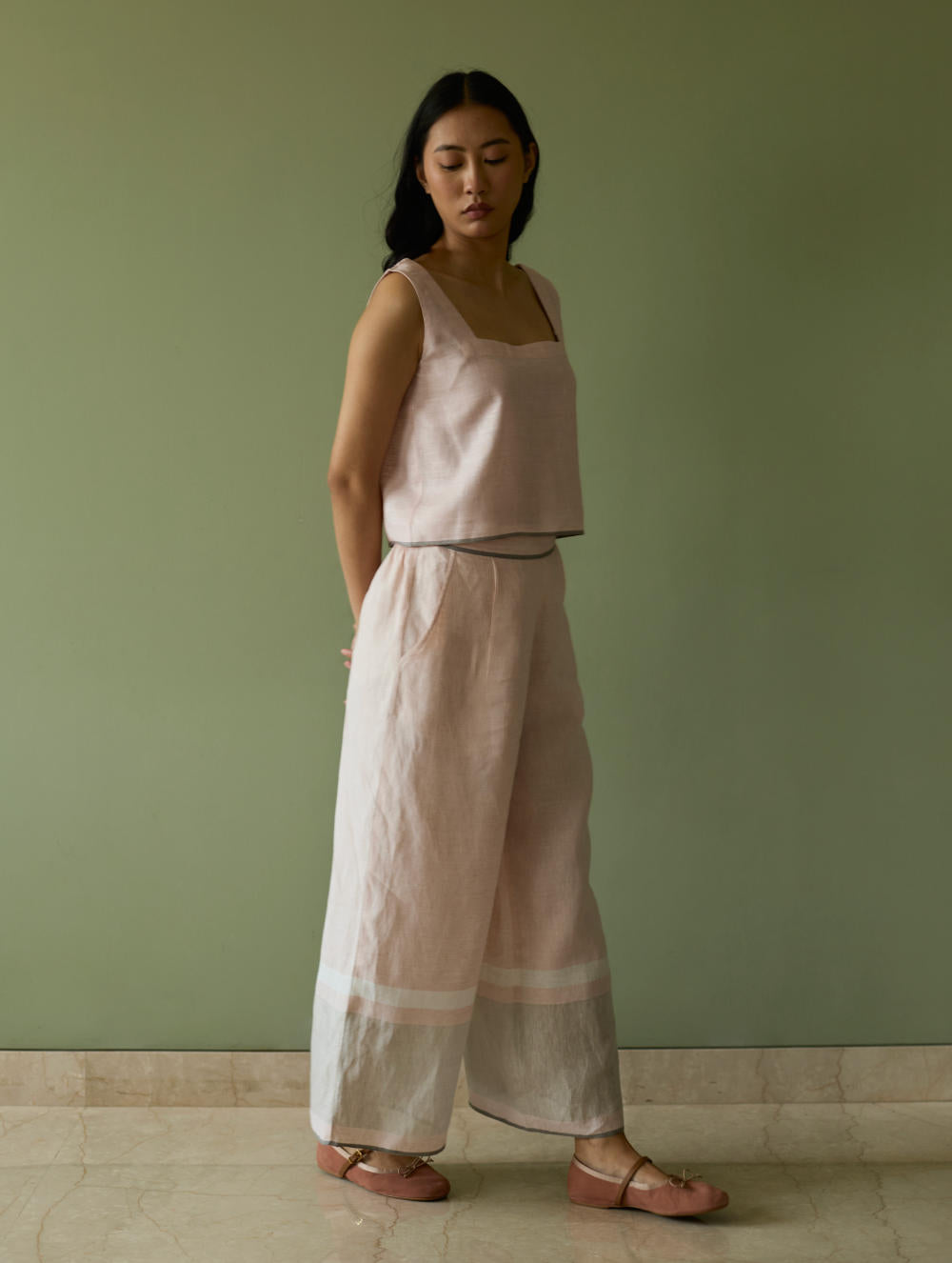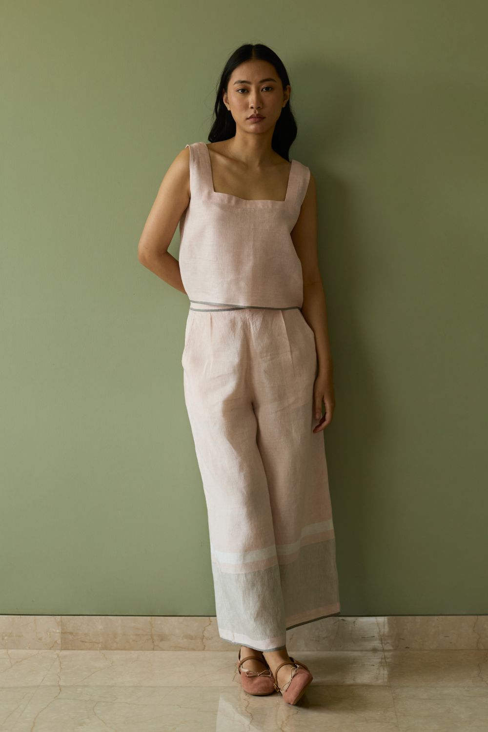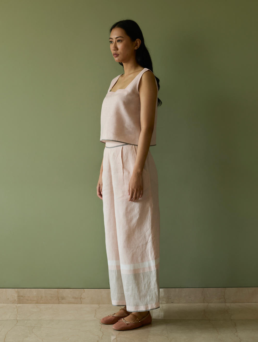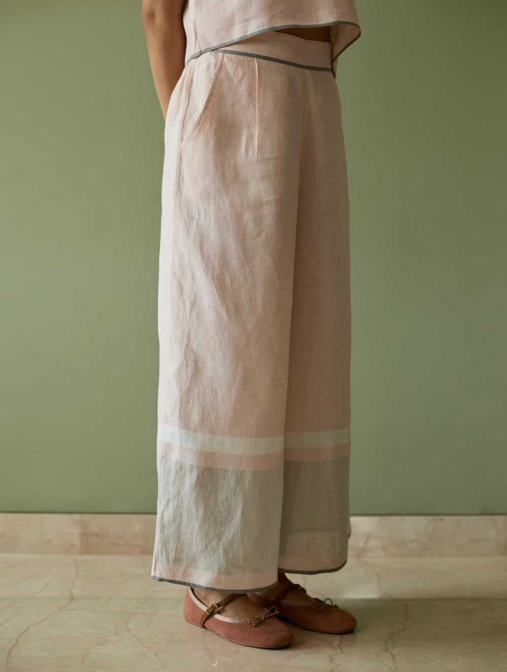 Timeless linen culottes with pleats at the waistband, comfortable pockets and a soft elasticated back waistband in our signature soft handwoven metallic linen.