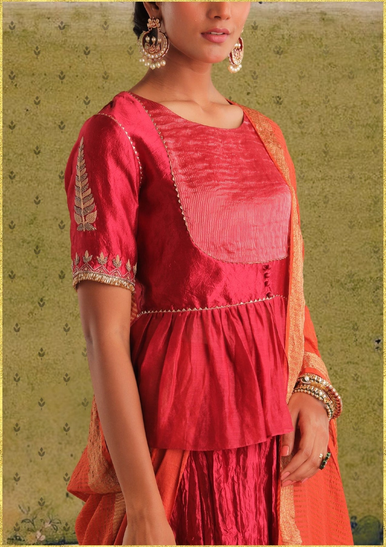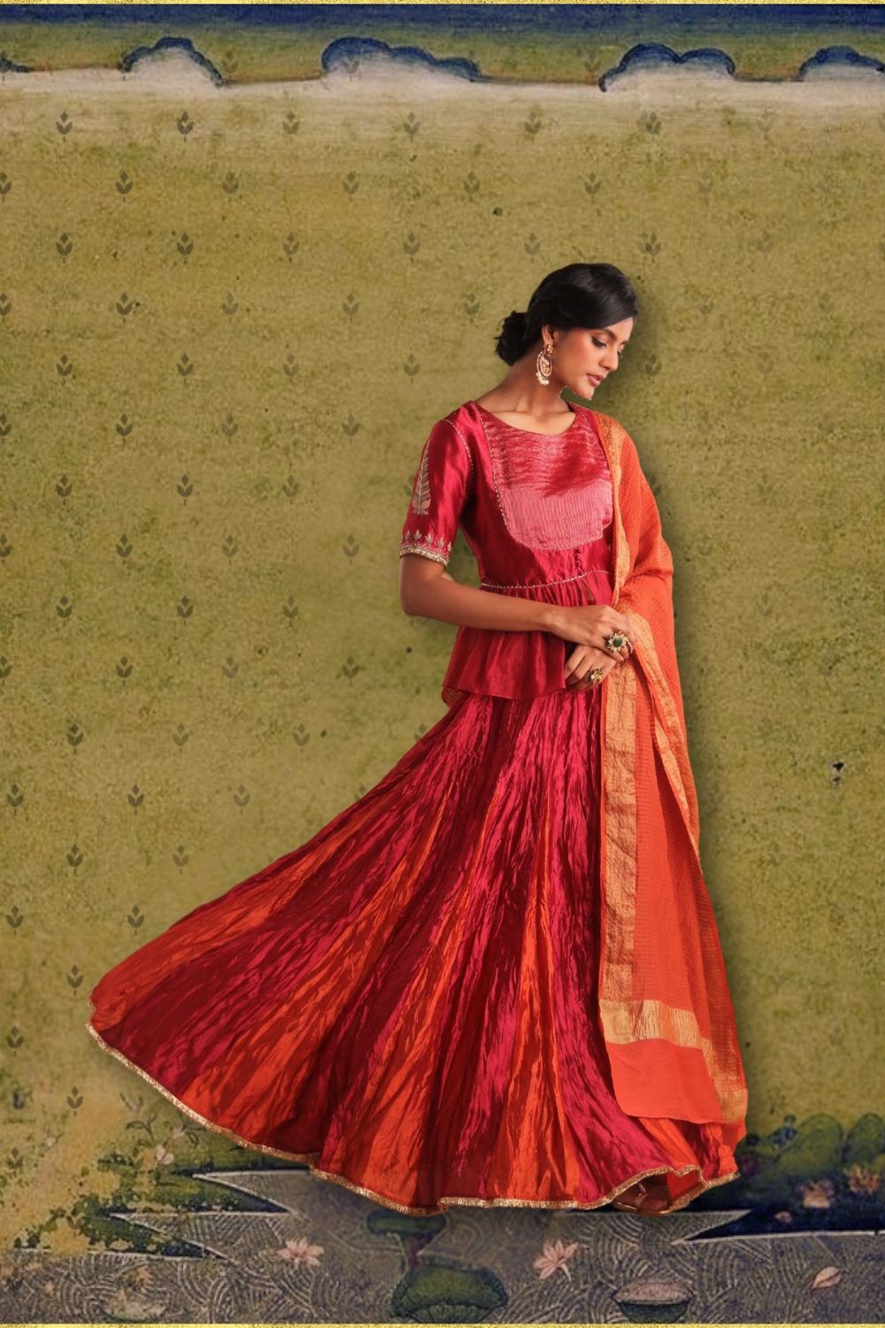 MATKA YOKE SILK CHOLI WITH GODET LEHENGA AND DUPATTA