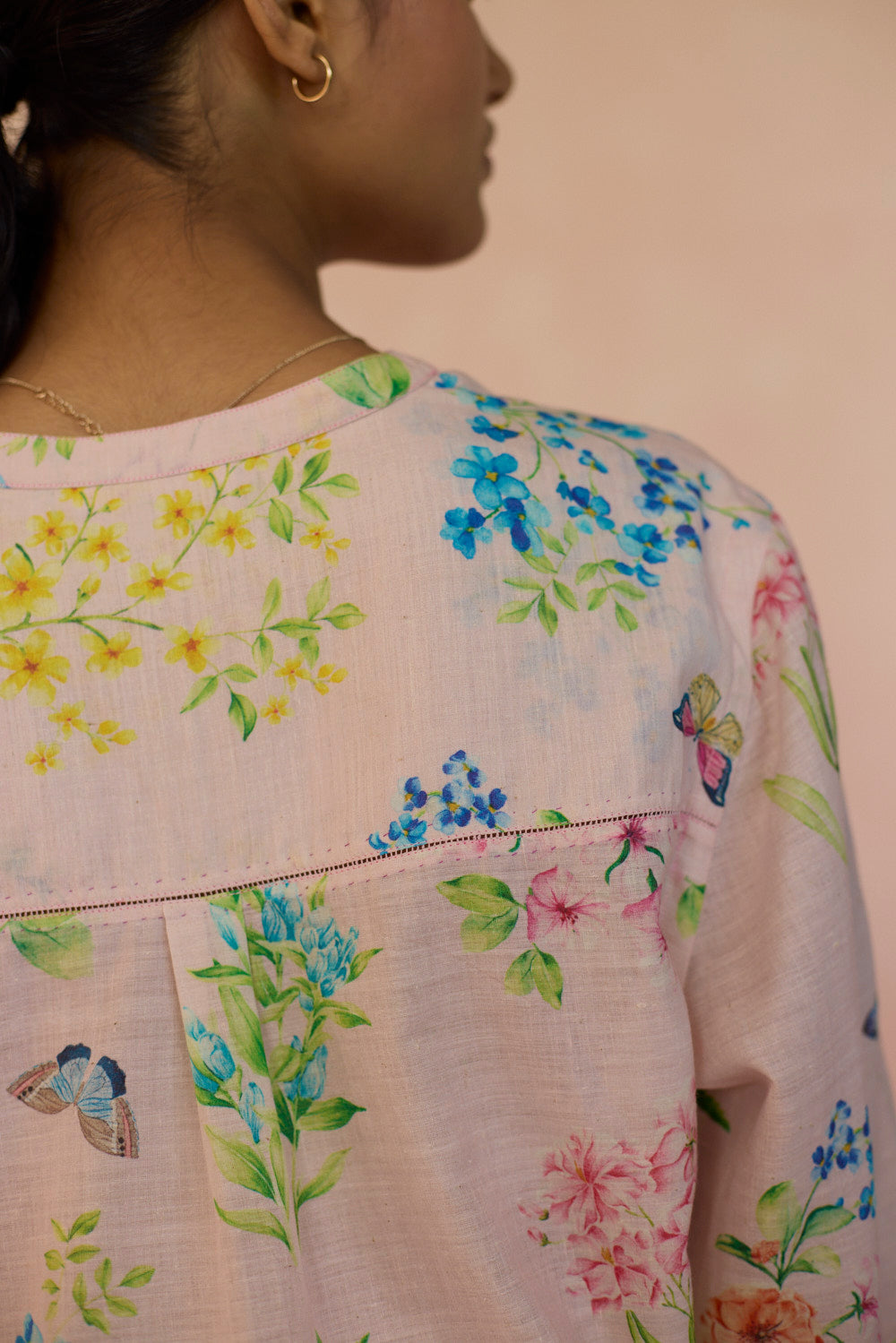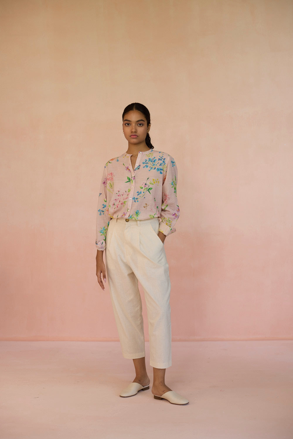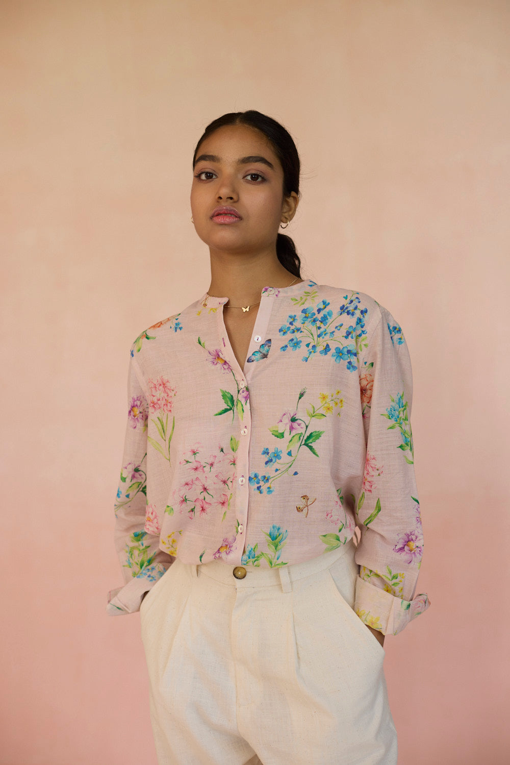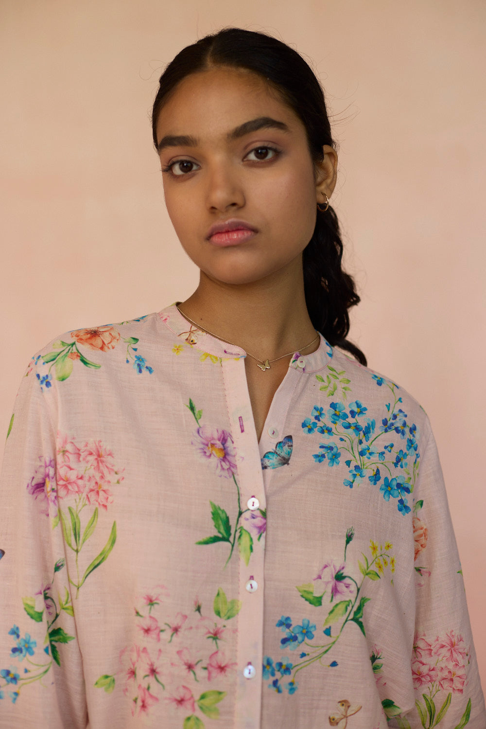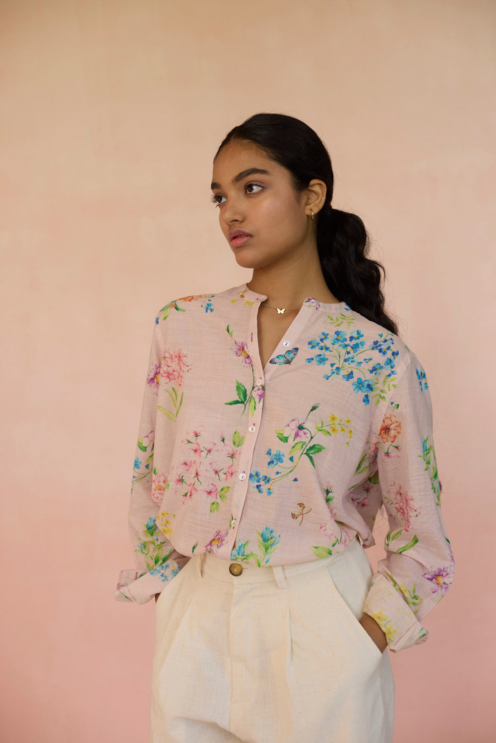 Valley of Flowers is a burst of wildflowers depicted in an intricate pattern evoking a sense of freshness and vibrancy. The lush, diverse colors offers an enduring sense of wonder. Perfect for those seeking beauty in its authentic, untamed state. The shirt is made with 100% handspun, handwoven cotton that lends grace and form to the fabric. Hand-sewn shell buttons and hand-swen seams adds a touch of individuality. The soft, yet durable cotton drapes effortlessly, offering comfort without compromising on style. Designed to being a splash of colour to your wardrobe.
