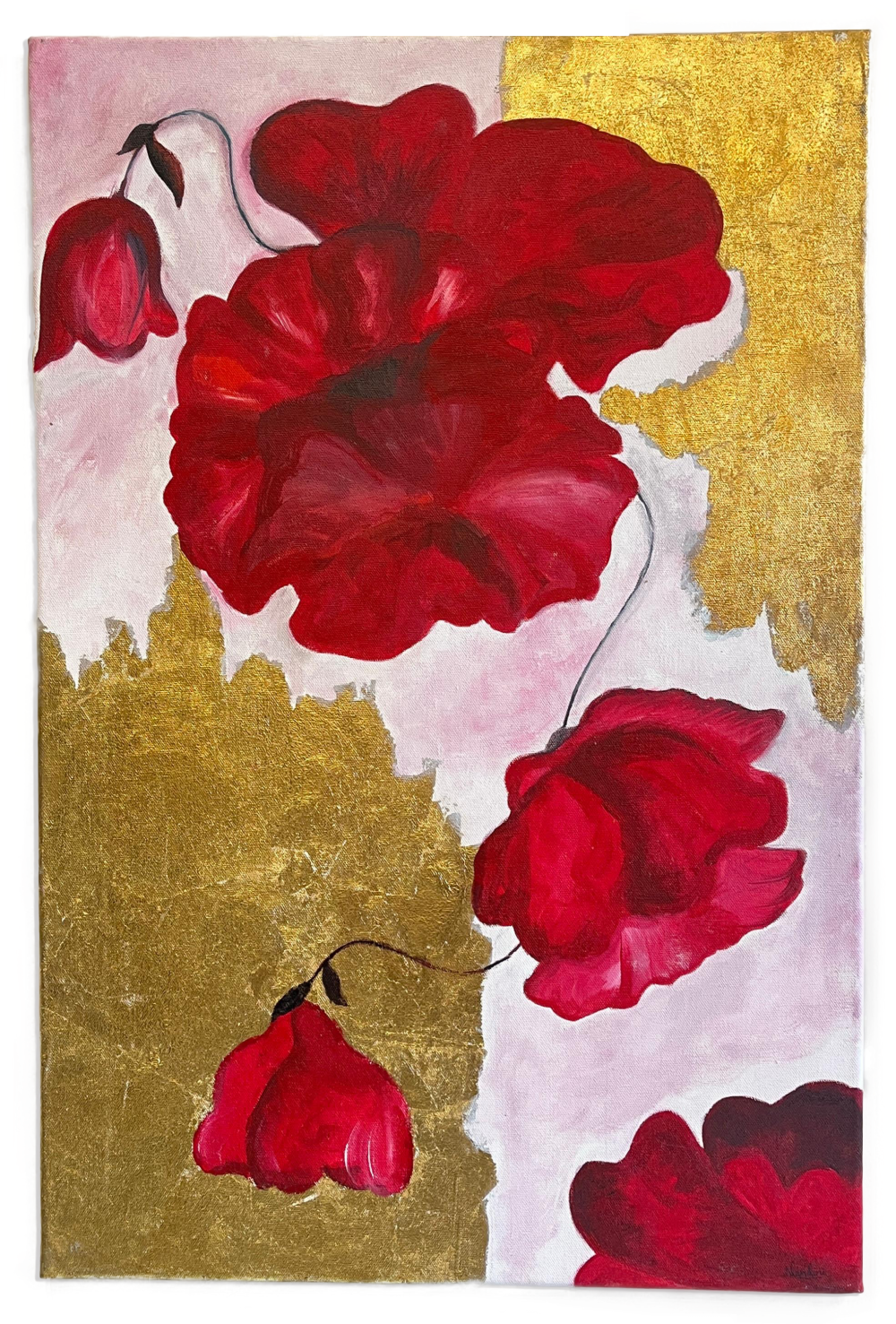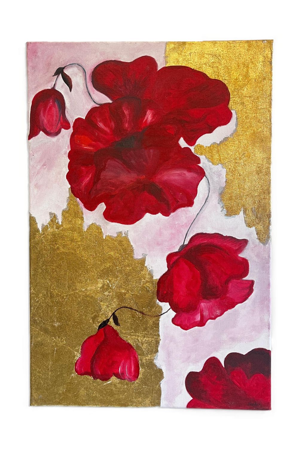 Inspired by this concept, Nandini’s collection serves as a kind of “Kintsugi for the heart.” Through intricate layers of gold and expressive strokes of acrylic, she seeks to capture moments of both light and depth, inviting viewers to look beyond the surface. Her art encourages a contemplation of resilience, urging a perspective that values the beauty in imperfections and the strength in restoration.