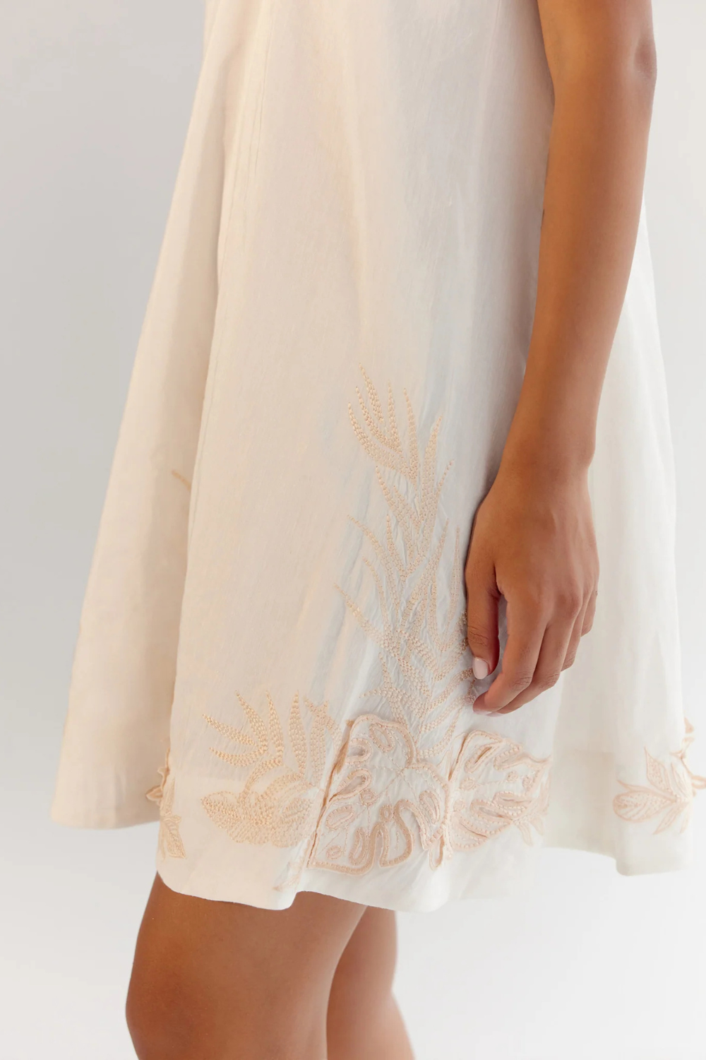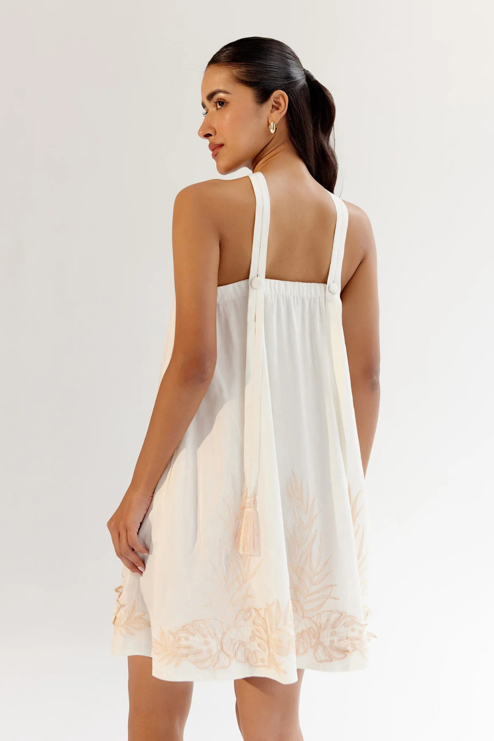 Introducing the Aida Mini that is available in three delightful variations: By the Sea and Seashell, both featuring charming placement prints, and a third option showcasing intricate applique embroidery—all crafted from breathable viscose linen. Each dress is designed with adjustable straps adorned with tassels and delicate beaded accents, adding a playful and personalized touch.