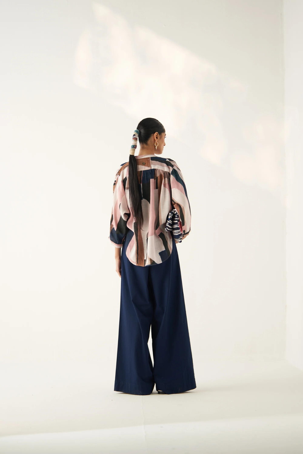 GOT Certified Azo-free dyes, Anti-Fit,Hand-painted abstract expressionist digitally transferred print, Gathered Shoulder, Front placket.