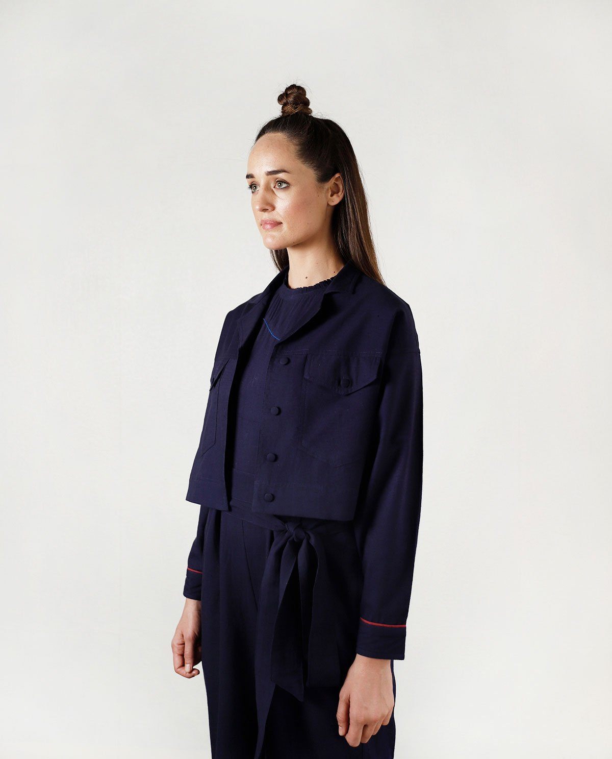 DARK BLUE HANDSPUN indigenous COTTON OVERLAY / JACKET HAND BLOCK PRINT